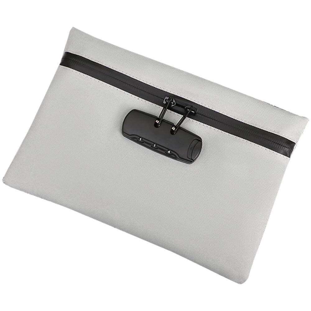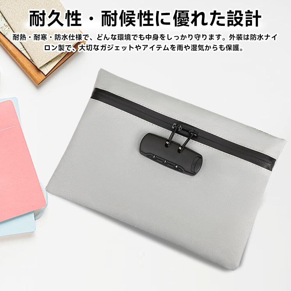 鍵付き ポーチ 鍵付き財布 貴重品ボックス 防火・防水仕様 ダイヤルロック式 貴重品収納ケース 通帳 パスポートなどの保管に最適 (グレー, 24.5×16.5cm)