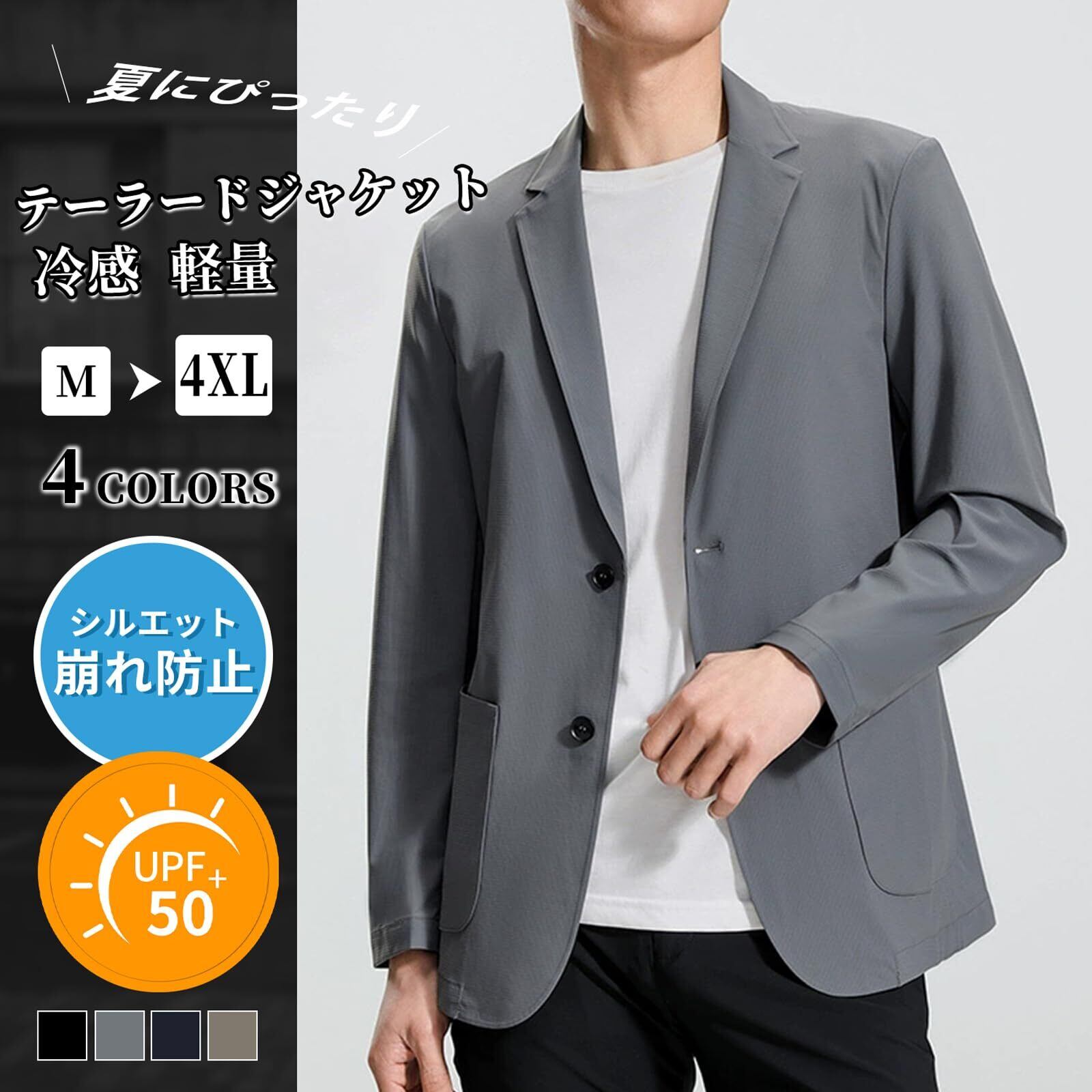 [22 Wear] メンズ ジャケット 夏 サマージャケット ビジネス スーツジャケット UVカット 涼し テーラードジャケット カジュアル 接触冷感 ストレッチ 2つボタン 細身 アウター