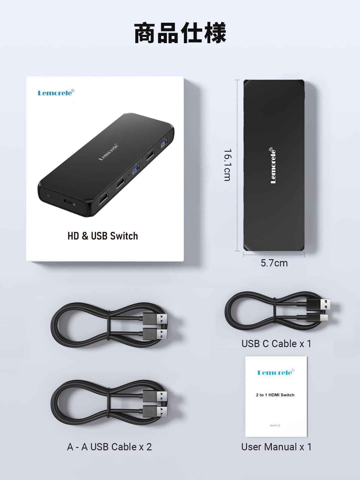 HDMI KVM 切替器 USB 3.0 2入力1出力 4K Lemorele HDMi KVM 切り替え器 HDMiセレクターキーボード、マウス、モニターを共有 PC2台用 USB3.0*4入力、USB3.0*2出力、HDMI2.0専用 ドライバー不要 簡単接続