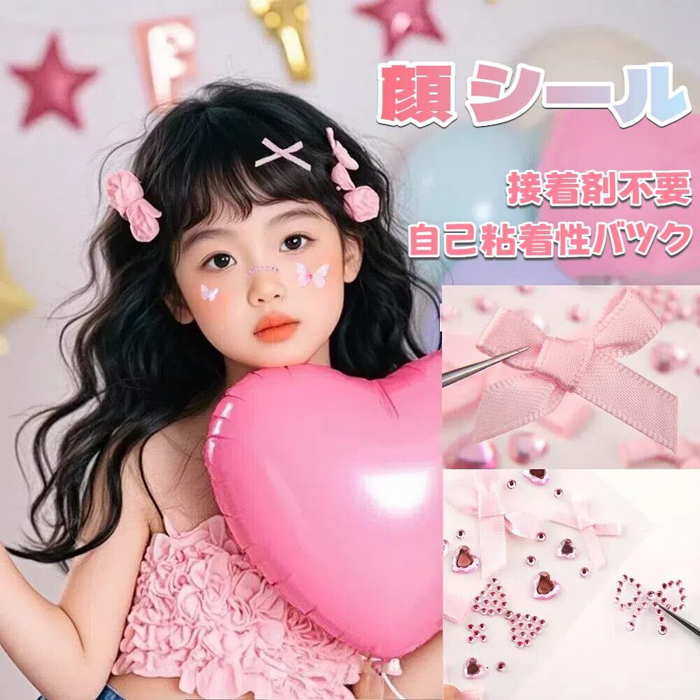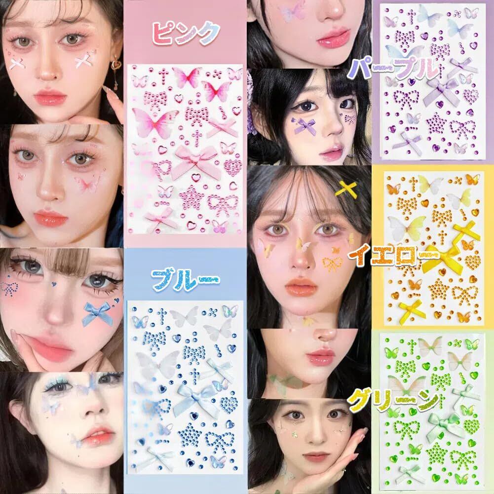 顔 シール 5枚セット ラインストーン シール フェイス キラキラ メイク 貼り付け可能 リボン デコパーツ 顔面デコ 携帯電話装飾 ネイルデコパーツ DIY用品 手芸用品 祝日の贈り物
