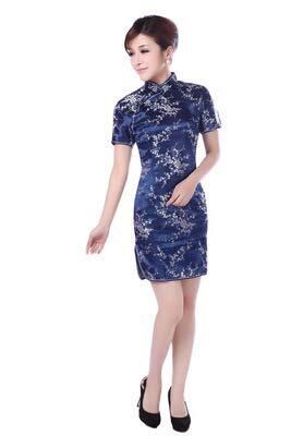 [CBCPOWER] ミニ チャイナドレス セクシーチャイナ服 梅花柄 光沢あり 短袖ミニドレス