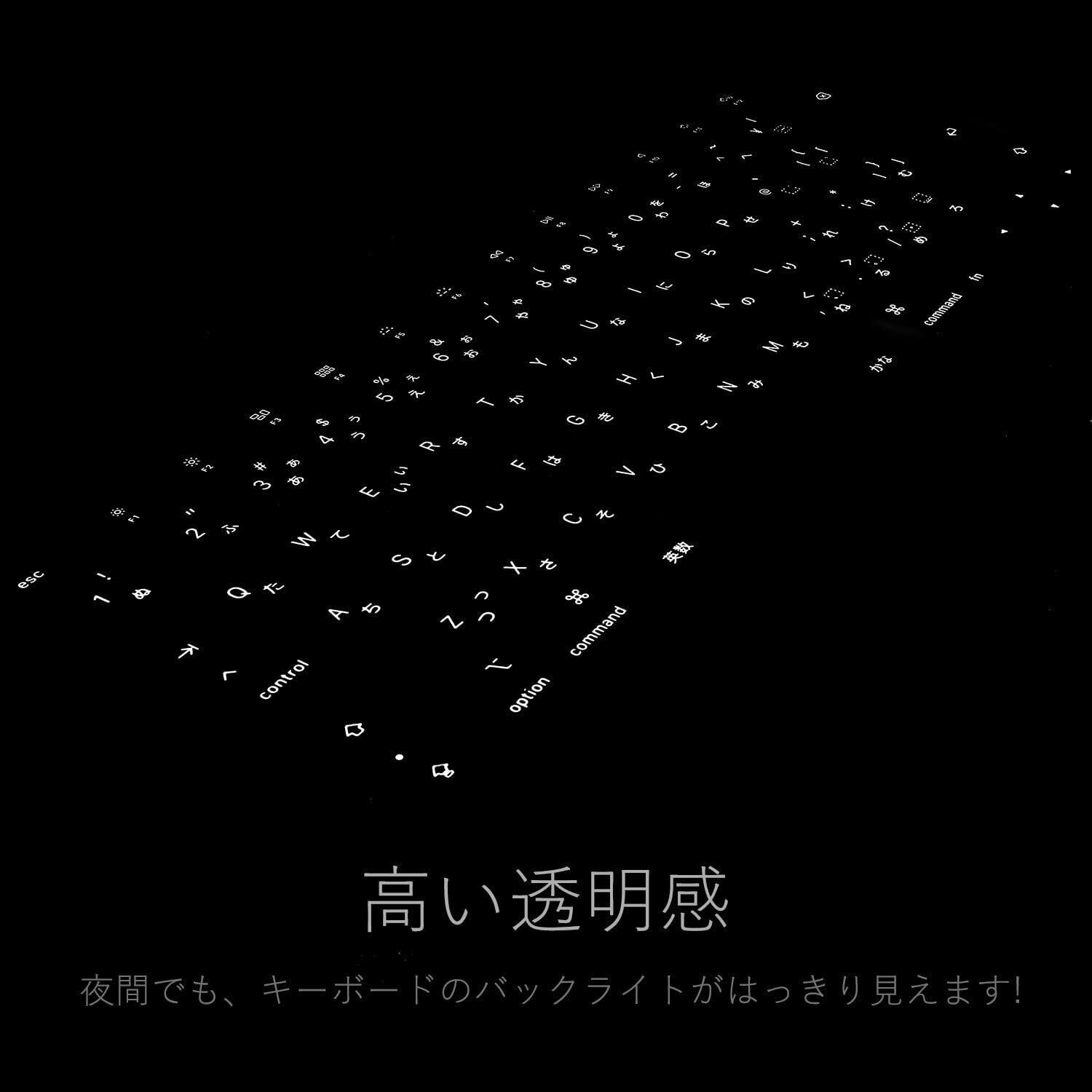 【超薄型】極めて透明に近い且つ薄い、僅かに0.18mm、気付かれないほど薄く、カバーを付けていても違和感のないタイピングを実現できます。夜間でも、キーボードの字がはっきりと見えます。もちろん、カバーを付けたまま閉じられます。