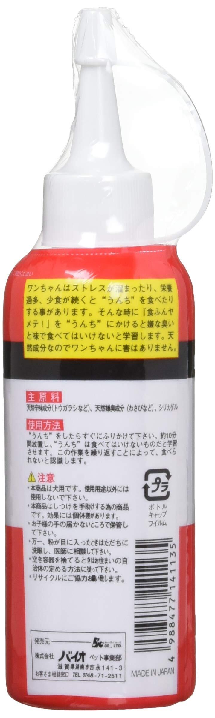 「うんち」をしたらすぐにふりかけて下さい。約10分間放置し、「うんち」は食べてはいけないものだと学習させます。この作業を繰り返すことによって、食べられないと認識します。