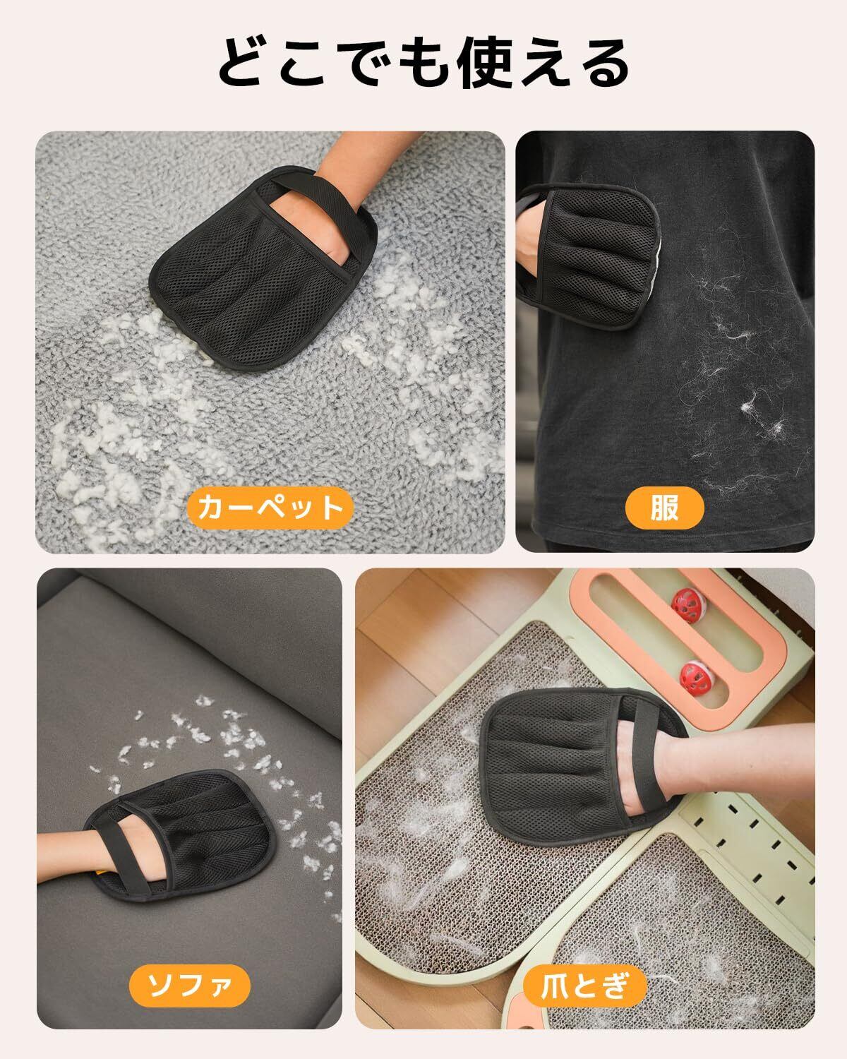 【多用途で家中活躍】ソファ、カーペット、衣類、車内などあらゆる場所のペット毛をスッキリ除去。ペットと暮らす家庭の必須アイテムです。