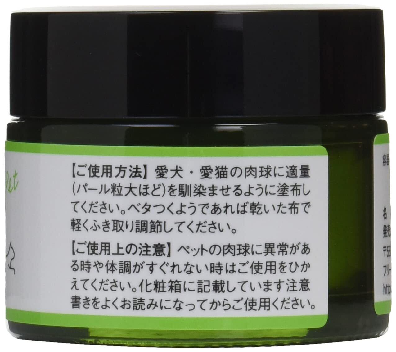 散歩後や肌荒れの季節に少量を肉球に使用する事で潤いを保つ効果が期待できます。その他植物由来成分も配合しているのでペットに優しく保温効果を高めます。