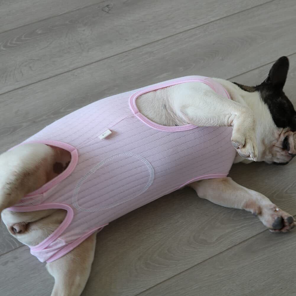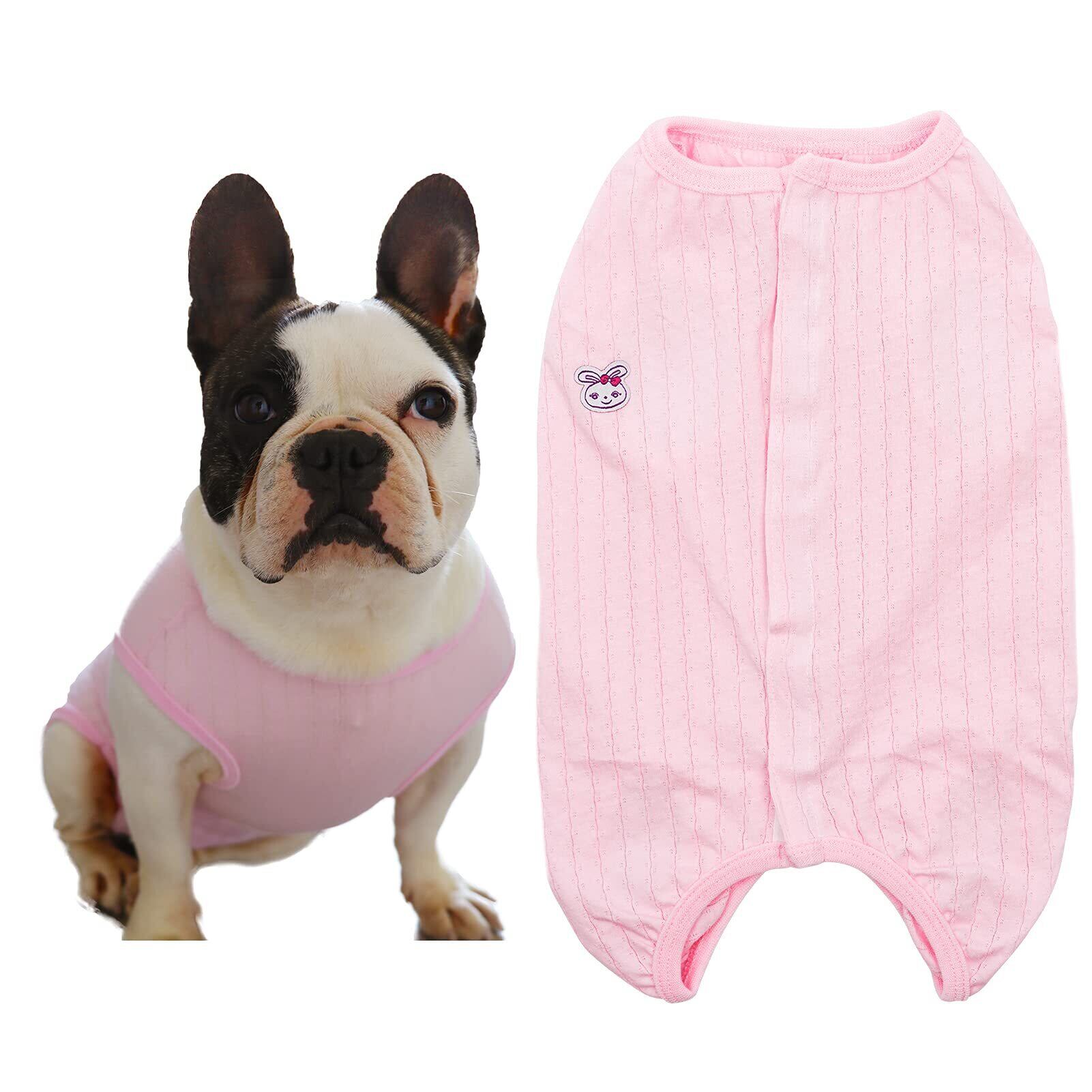 KUVEELA Pet 犬 服 犬術後服 術後ウェア フレンチブルドッグ適用 エリザベスカラーに代わる オス メス 去勢 避妊 離乳 傷口保護 (M, ベビーピンク)