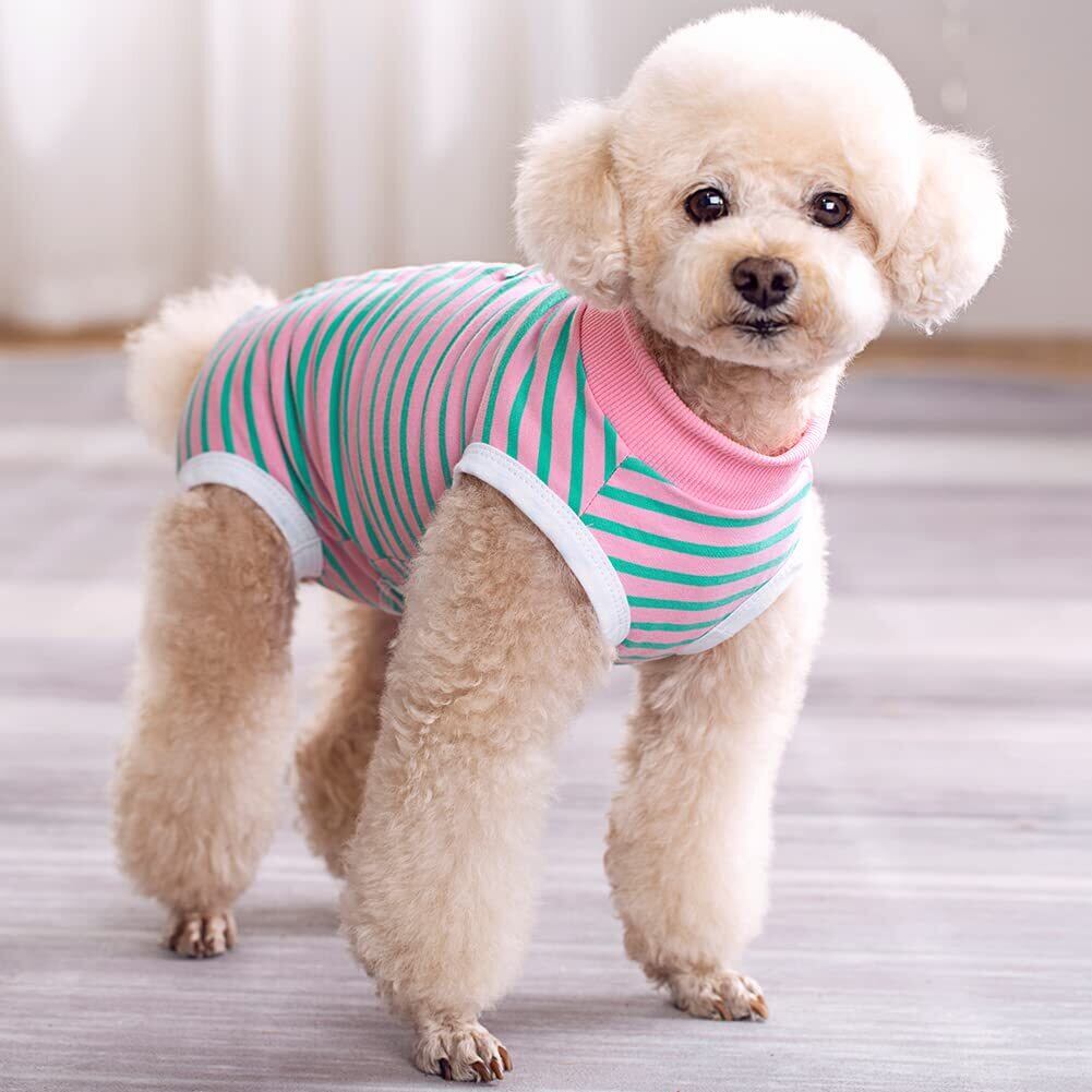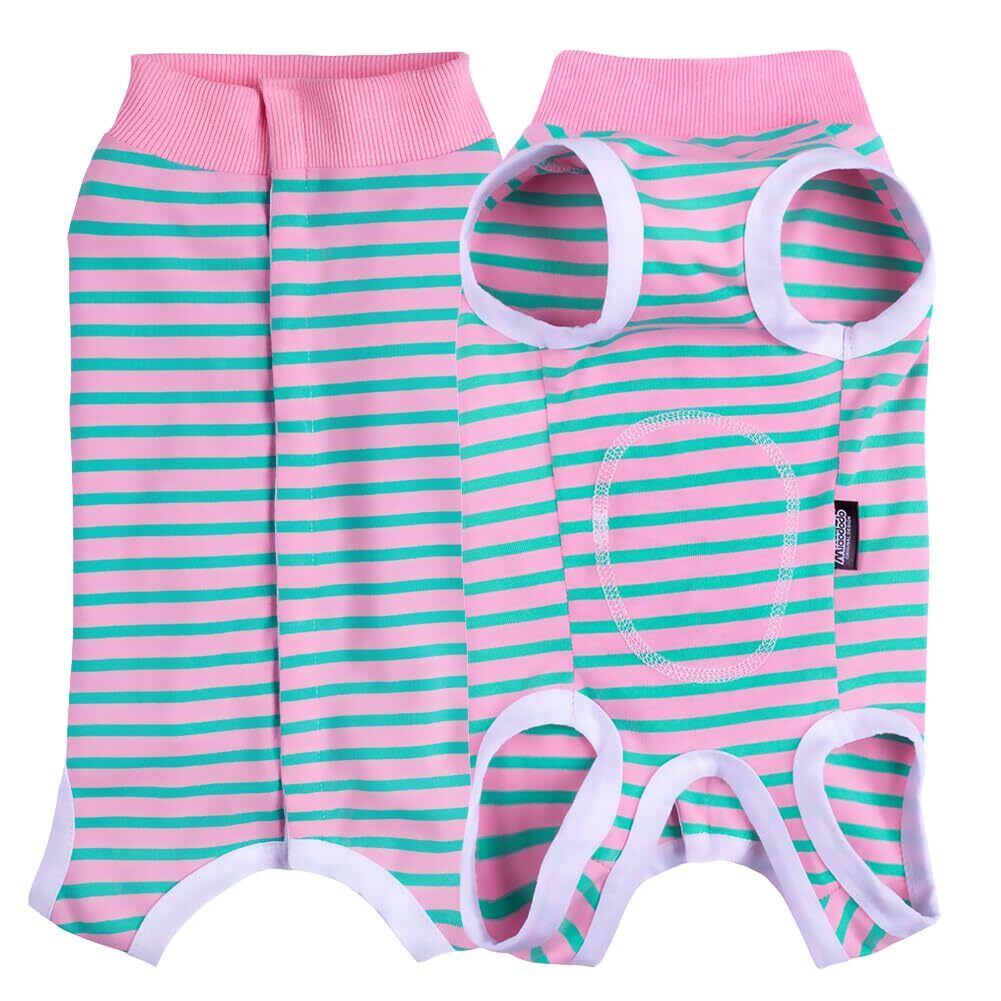 KUVEELA PET 術後服 犬服 猫 犬術後服 術後ウェア 術後カバー服 保護服 介護服 避妊 離乳 傷口保護 皮膚病 小型犬 中型犬(ピンク+グリーン XL)
