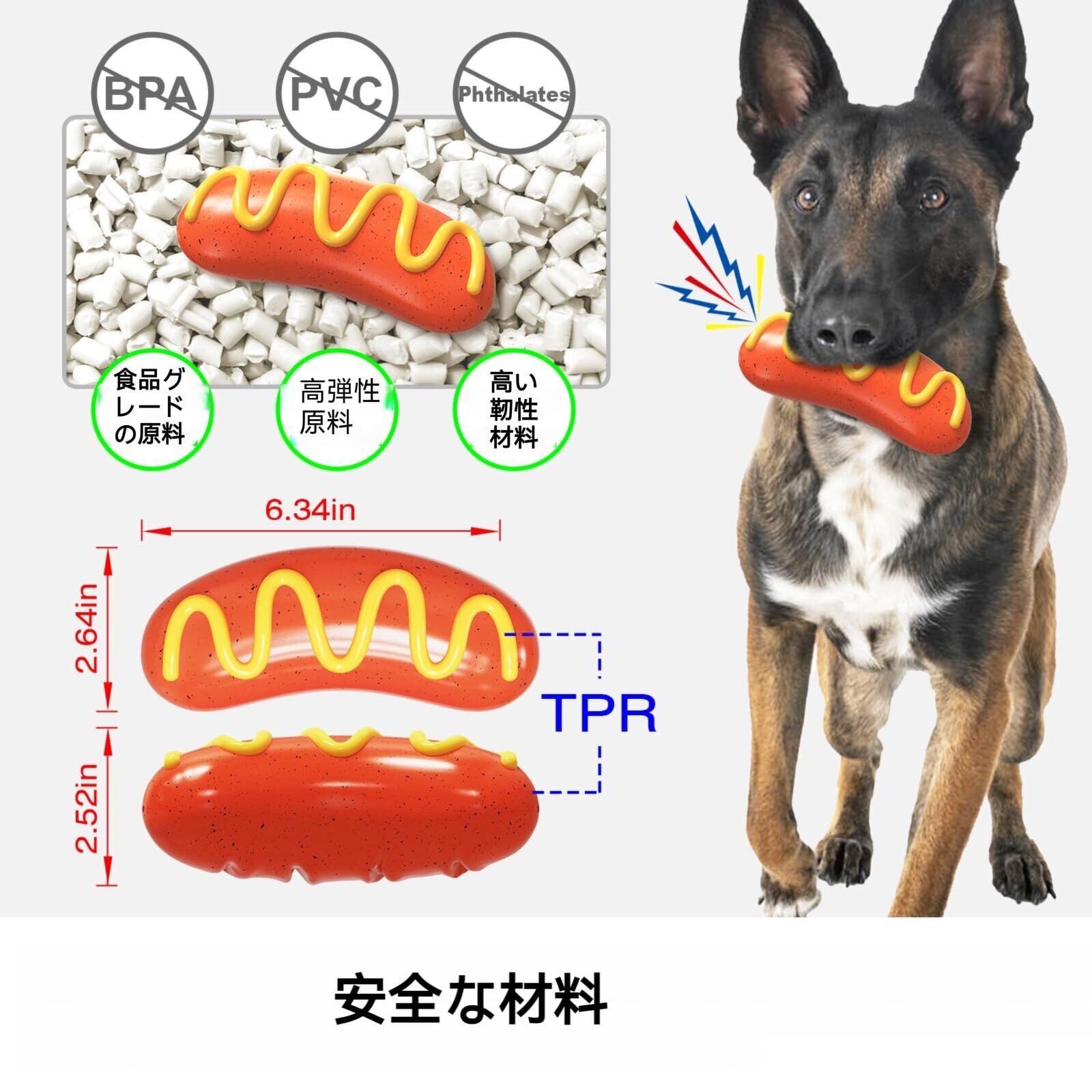【安全な素材】:このおもちゃは食品グレードのTPRで作られており、高弾性と高靭性を備えています。 この素材にはビスフェノールA、PVC、フタル酸エステル類は含まれておらず、愛犬の健康を完全に守ります。 原材料や製品の安全性は非常に高いので、安心して愛犬にご使用いただけます。