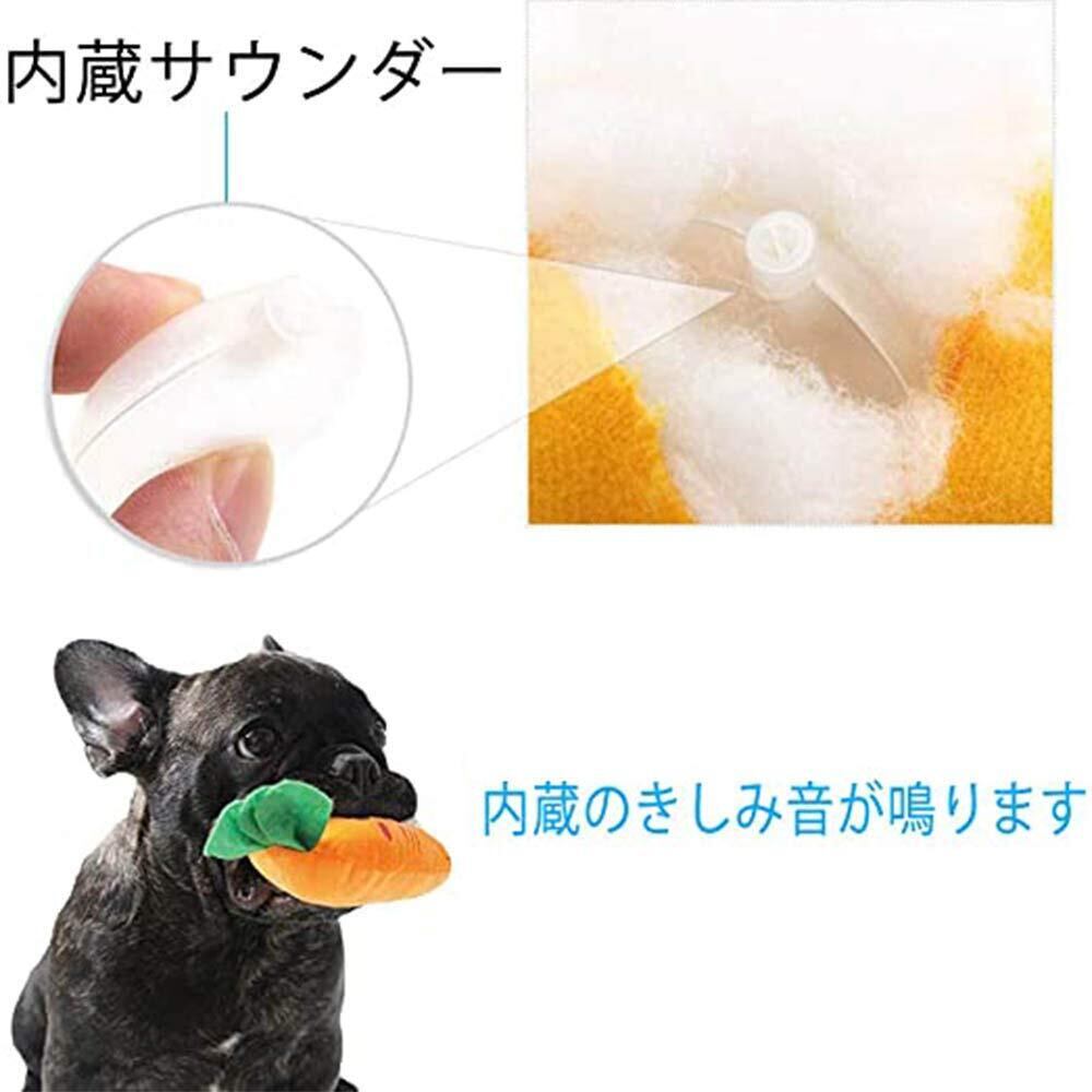 心地よい色と柔らかい質感の鮮やかな野菜と果物のデザイン。子犬向きのおもちゃです。