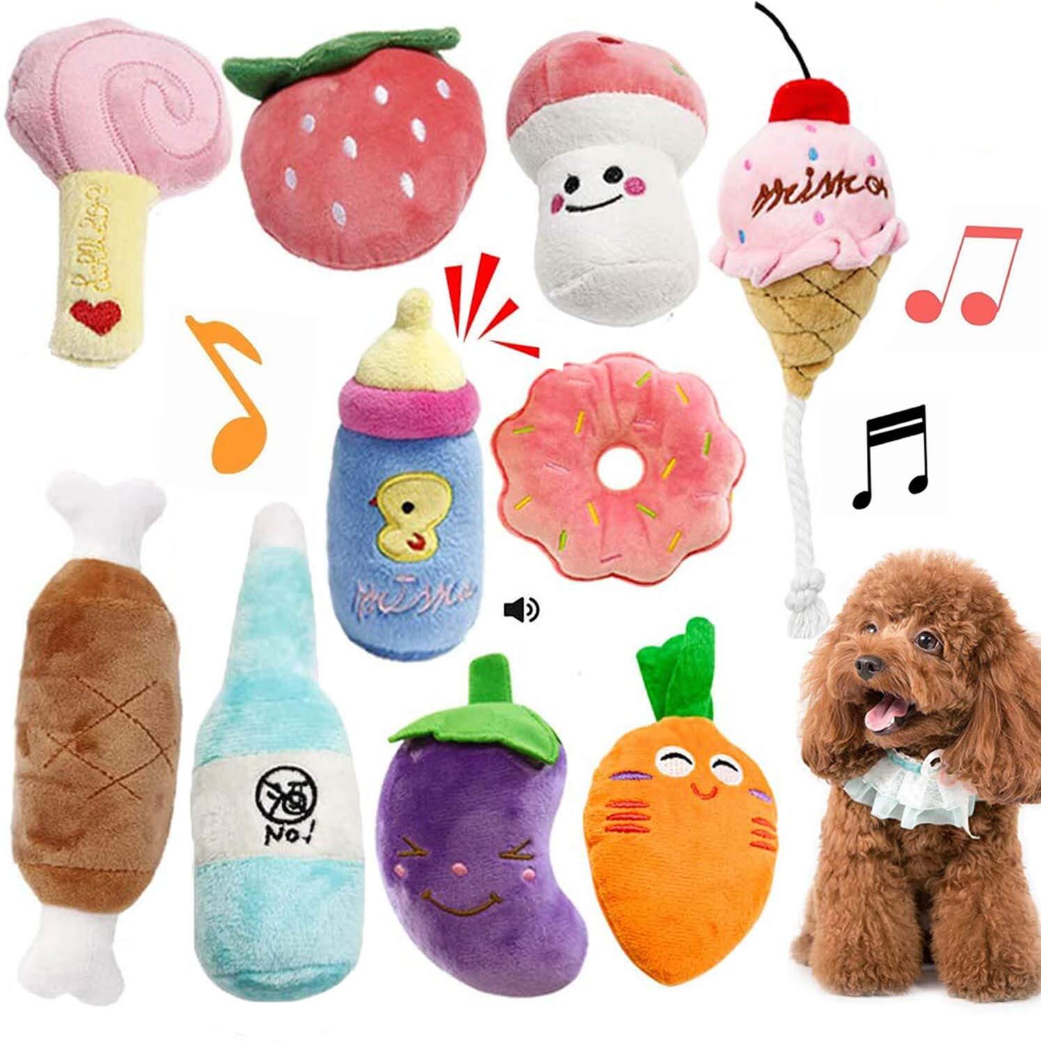 NUOMIZI 犬おもちゃ 犬噛むおもちゃ 音の出るおも 音が鳴る ちゃ ペット用品 ぬいぐるみ 運動不足 ストレス解消 清潔安全 丈夫 耐久性 清潔 歯磨き 子犬/小型犬 可愛い 小中型犬用 洗える (10点セット)