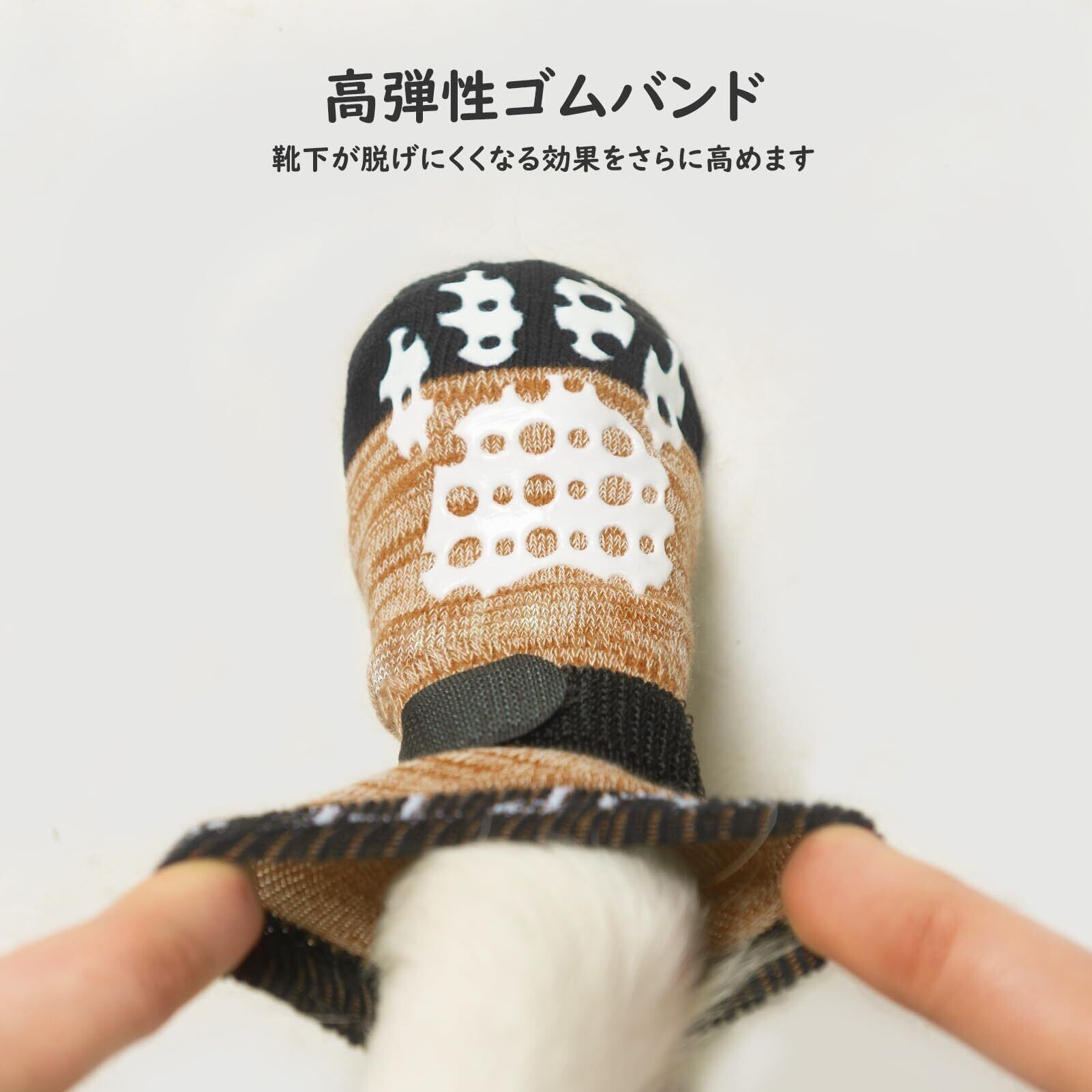 PUPTECK 犬 靴下 滑り止め マジックテープ付き 脱げない 舐め防止 肉球保護 通気性 柔らかい 介護 サポート 転倒防止 犬用靴下 4個セット 可愛い 屋内用 老犬 シニア犬 小型犬 中型犬 大型犬 (茶色, XSサイズ)