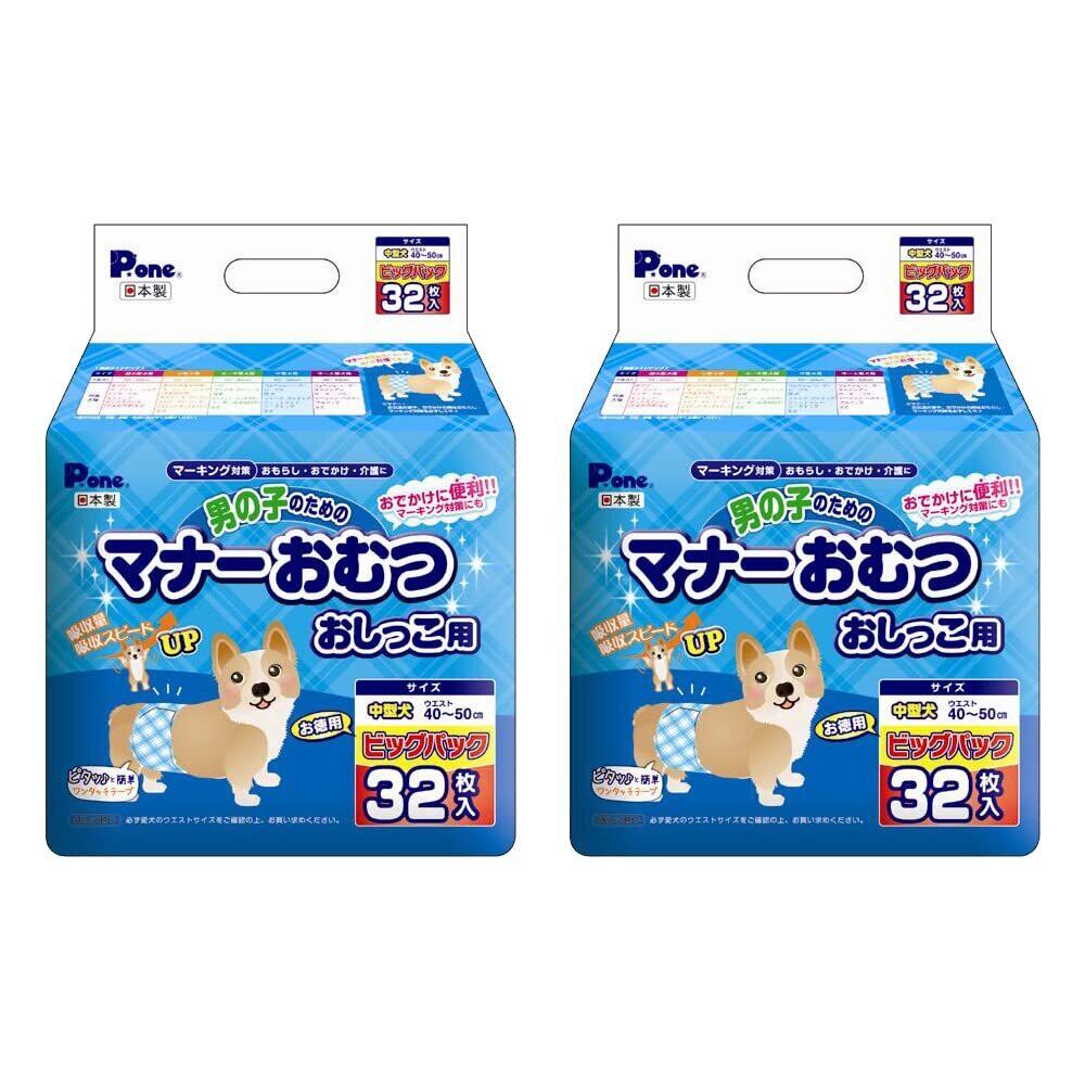 Pone 男の子のためのマナーおむつ ビッグパック 中型犬用 32枚×2個セット【ケース販売】