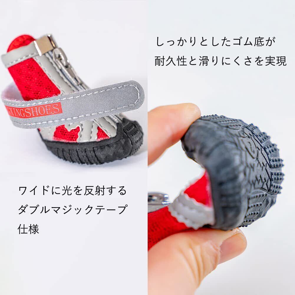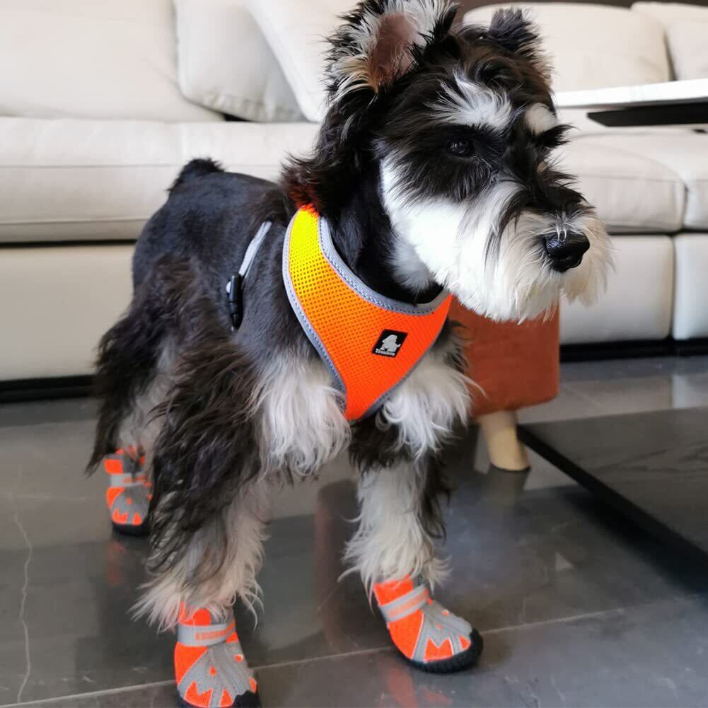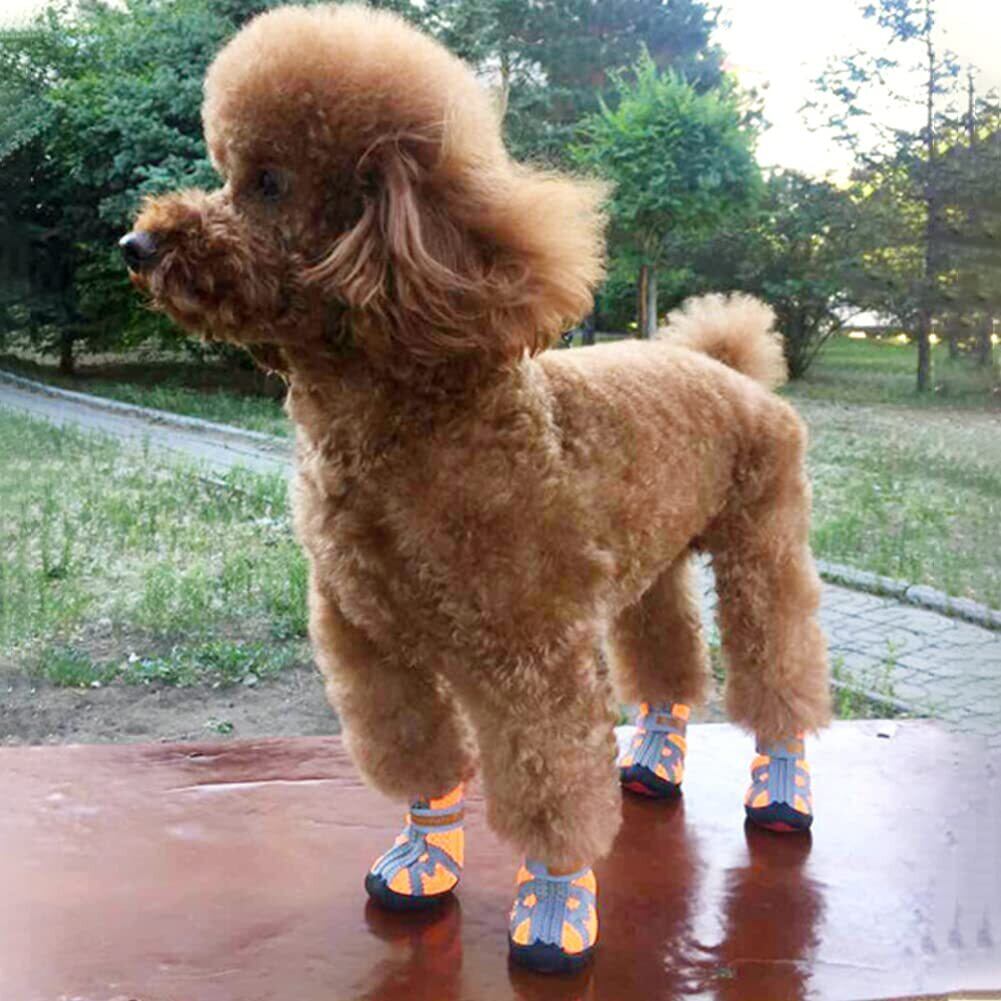 KUVEELA PET 犬用靴 ドッグブーツ ドッグシューズ 犬用シューズ 犬靴 レインシューズ 肉球保護 滑り止め 汚れ防止 夜間反射テープ付き 小型犬 中型犬 通気 お出かけ お散歩 4個入り(オレンジ 3#)