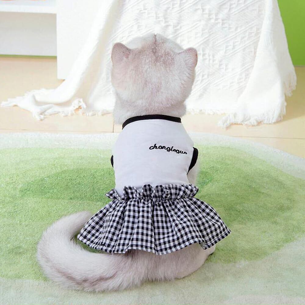 【可愛い】単色のTシャツ、とチェック柄の裾、おしゃれ なワンピース設計して、毎日一緒に生活する愛犬が自宅でも散歩中でも、外出先でもこんなオシャレな服を着せると、注目を浴びるアイテムに間違いなし。