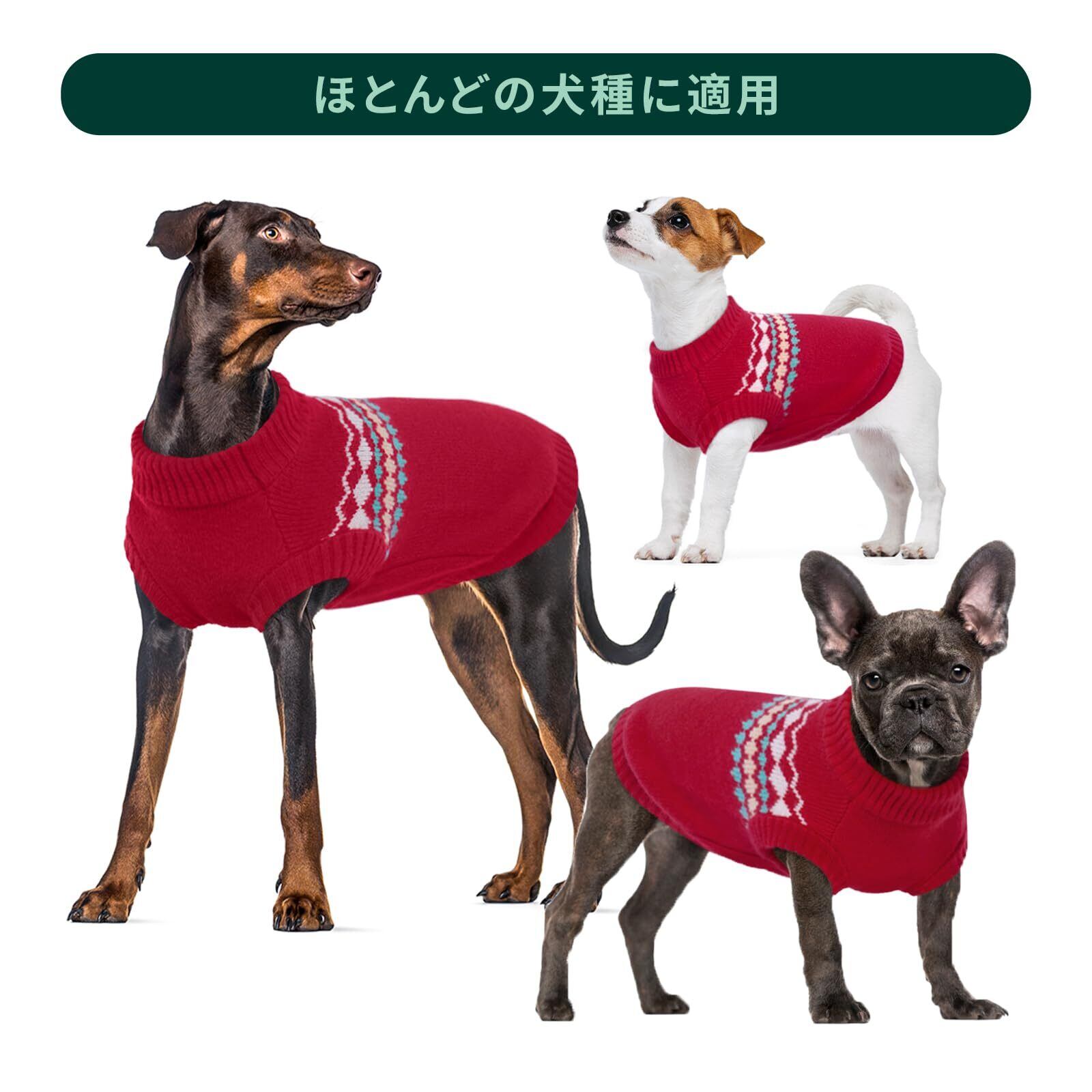 Kuoser犬服 犬用セーター 冬服 防寒着 ソフト 通気 快適 伸縮素材 可愛い服 クリスマス 新年 誕生日 パーティー レッドXL 胸囲62cm