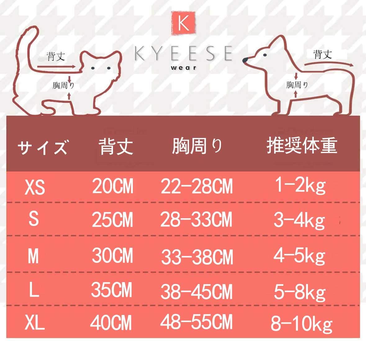 キースウェアペット用品店、本物の、サイズ:XS:長さ20cm:バスト22-28cm、首周り17-22cm、S:体長25cm:バスト28-33cm、首周り22-25cm、M:体長30cm:バスト33〜38cm、首周り25〜30cm、L:長さ35cm:胸囲38〜45cm、首周り3〜40cm、XL:長さ35cm:胸囲48〜55cm、首周り3〜40cm、4サイズあります。ご注文前に写真のサイズ表をご確認ください。購入する前に、実際のサイズに応じて、必ずペットのサイズを測定してください。品質に問題がある場合は、メールでお気軽にお問い合わせください。