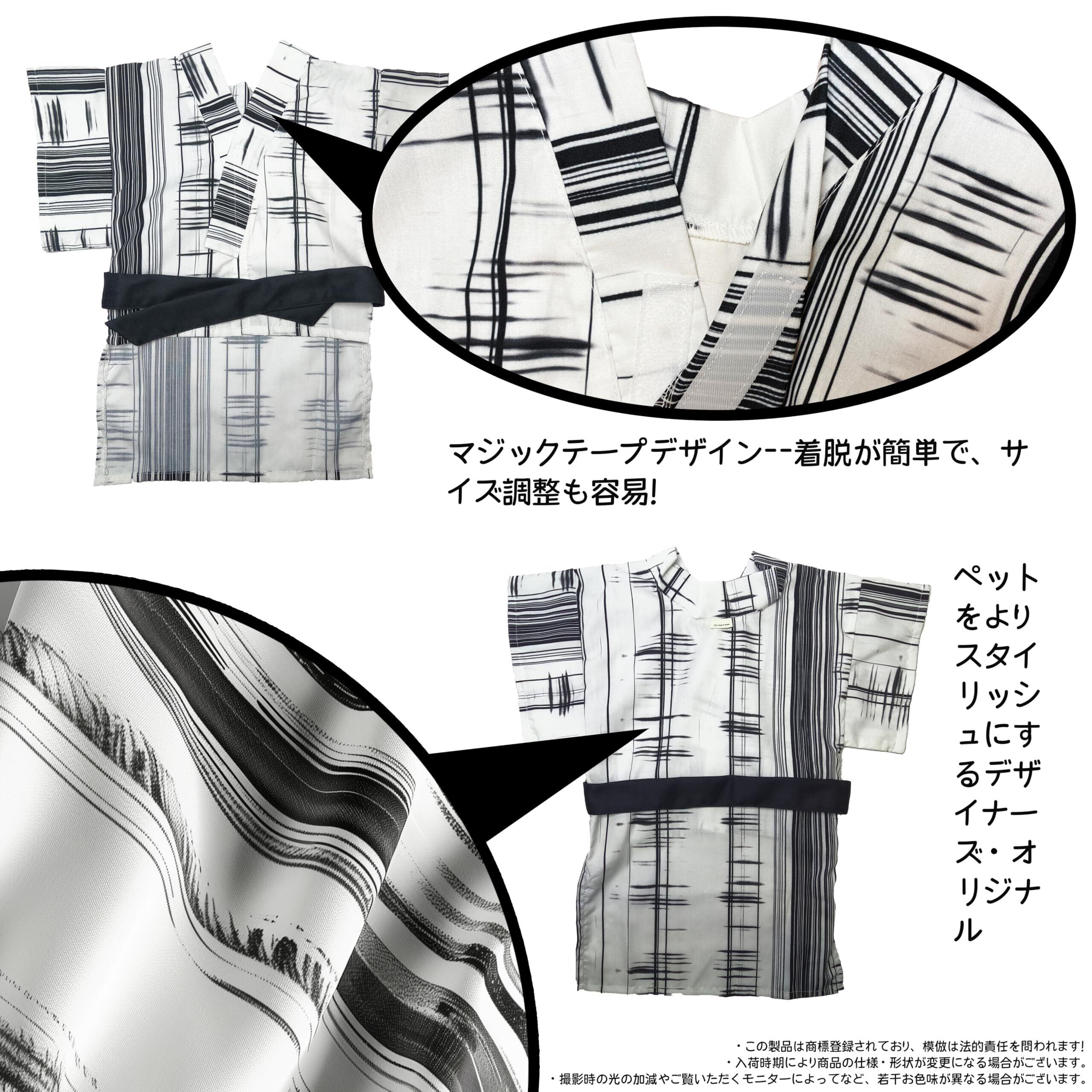 Wag&Wink 犬服 猫服 和服 着物 防寒対策 ペット用袴 袴 甚平 浴衣 小型犬 中型犬 秋冬 おしゃれなペット服 和風 春のペット服 七五三 結婚式 お祝い 祭り 誕生日 娘の日 記念撮影(黒と白のストライプ)(L)