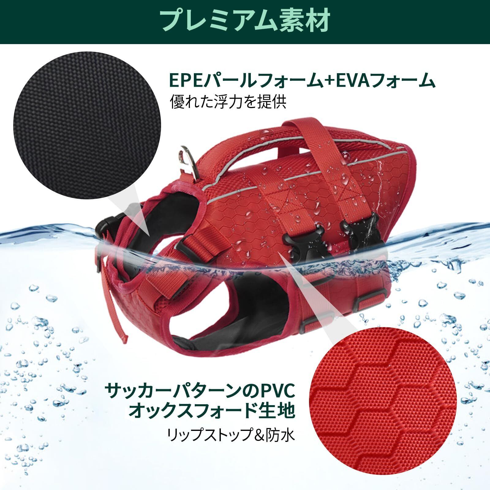 【安全を確保するライフベスト】犬用ライフベストの上部には安全ハンドルがあり、犬が危険な場合に最速で危険から脱出することができます。ライフセーフベストの最大の役割は、犬の泳ぎを補助し、後ろ足の運動量を減らし、ペットの後ろ足の股関節を保護することです。