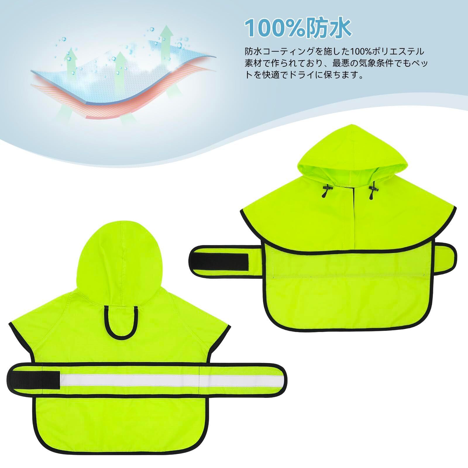 反射テープ:犬レインコートの裏側には反射テープが貼られており、車の運転手が視界の悪い天候や夜間に犬を見ることができるようにして、犬の命を救います