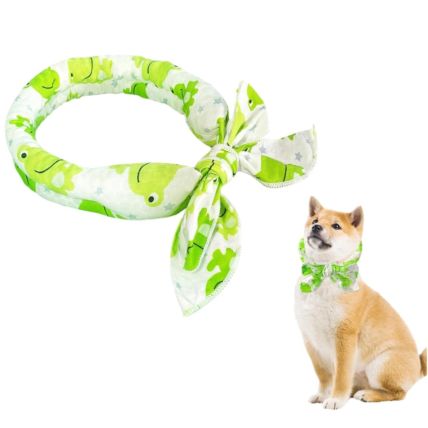 クールネック 冷たい首輪 接触冷感 冷却スカーフ暑さ対策グッズ 犬 ネッククーラー 保冷剤 繰返し使用 犬用ネッククーラー 安全 無臭 速乾涼 熱中症対策 室内用 お散歩用 (幸せなカエル, 5*100)