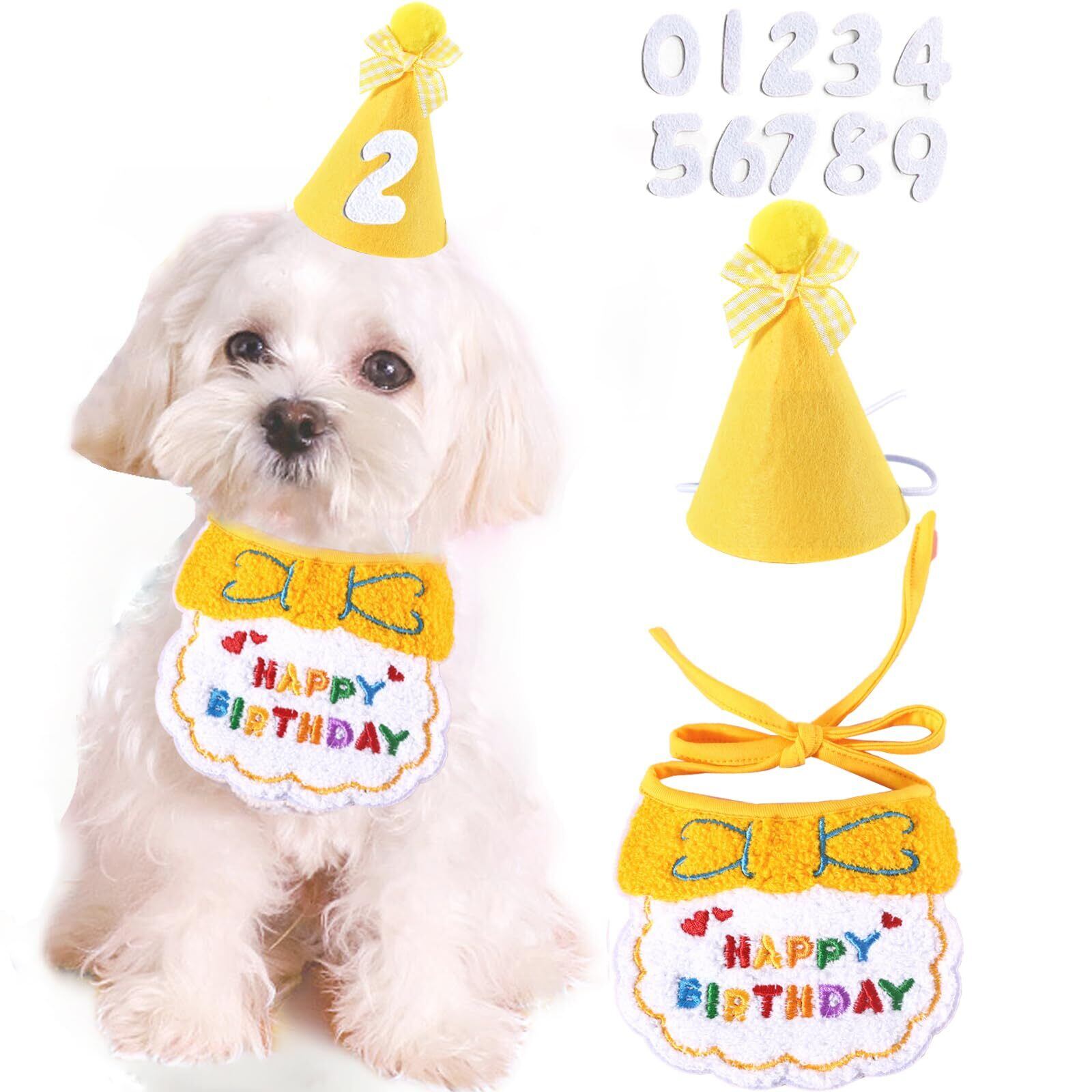 犬 誕生日 帽子 犬 猫用 誕生日グッズ 誕生日帽子 3点セット バースデー帽子 ペット用誕生日帽子 帽子 数字付き クラウン きらきら バースデーハット 飾り付け ペット 帽子 誕生日ハット (三角帽子-きいろ)