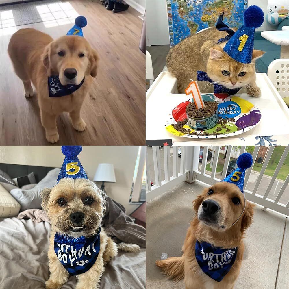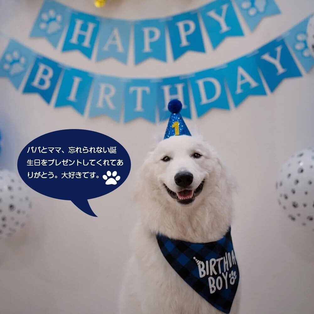 YBGGJO ペット用誕生日帽子 犬 猫用 バースデー帽子 数字付き 飾り付け バンダナ バナー 記念日 誕生日 パーティー飾り (ブルー)