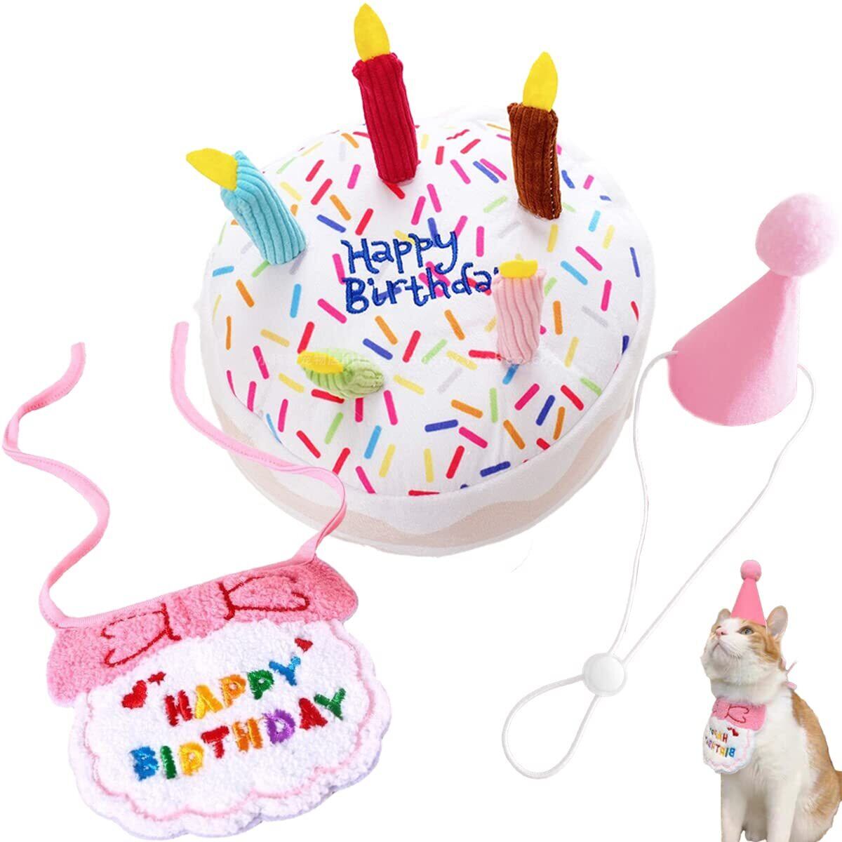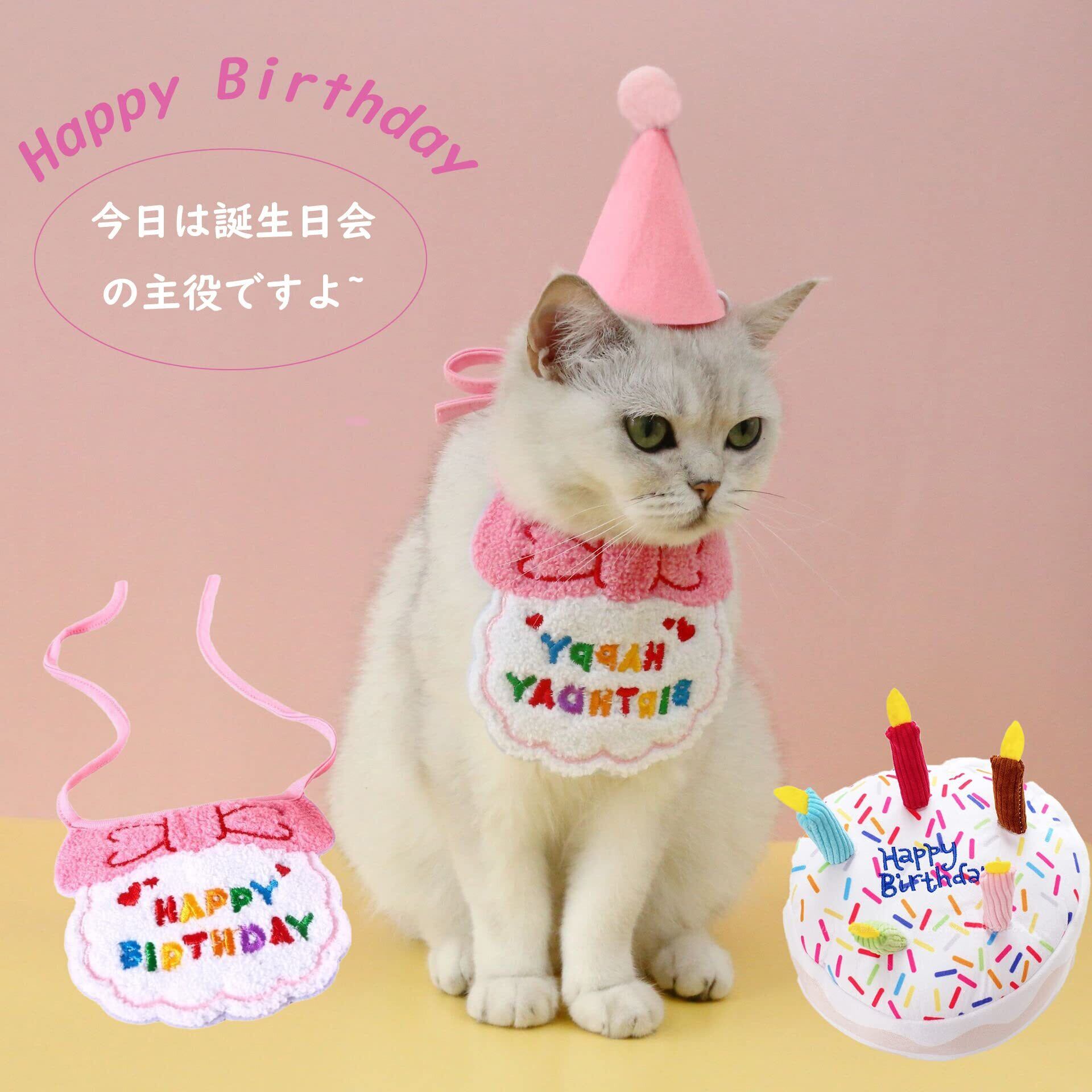 3点セット 犬 猫 誕生日 バースデー おもちゃ ぬいぐるみ 犬の噛むおもちゃ 音が出る ケーキ 帽子 ゼッケン ペット用 お誕生日 飾り 玩具