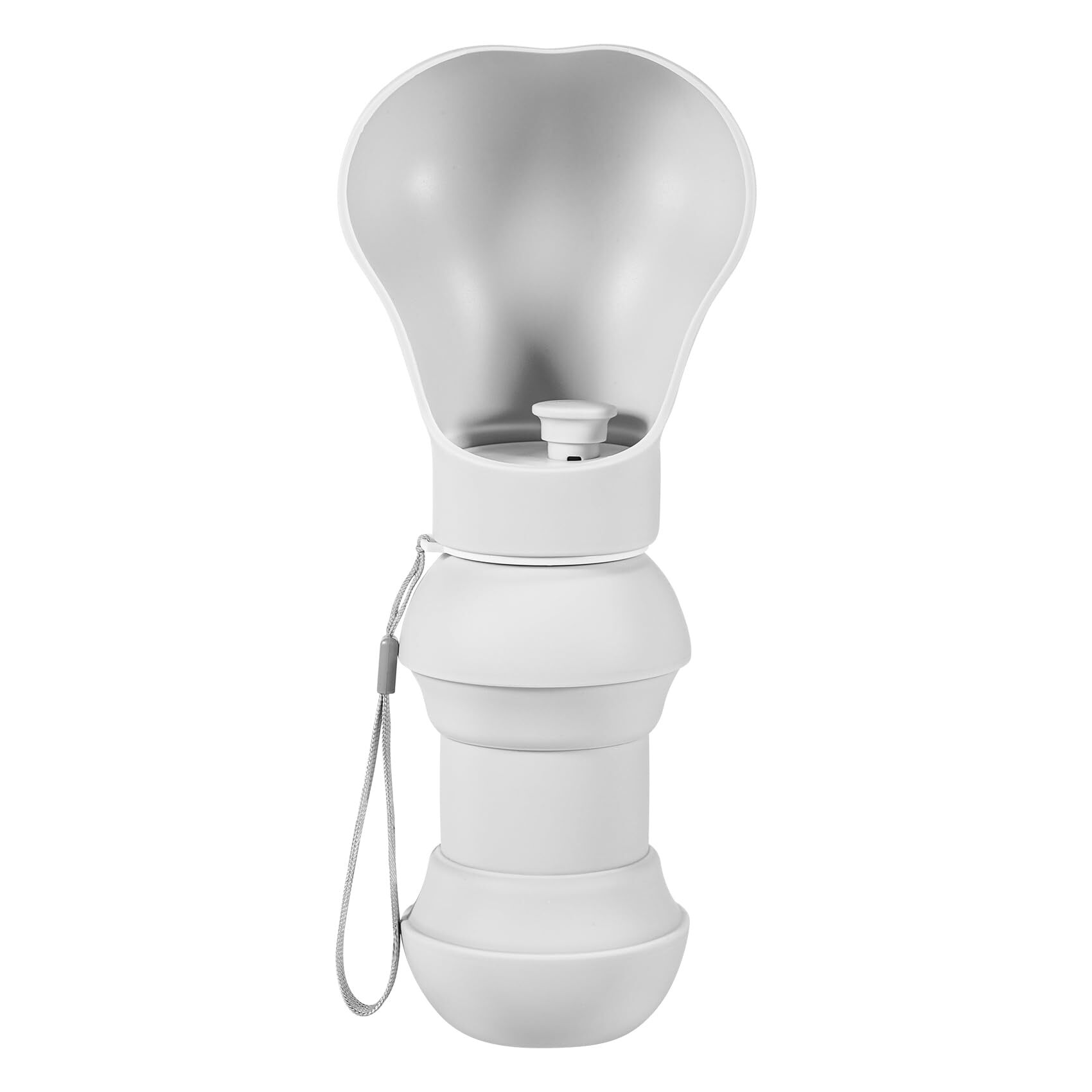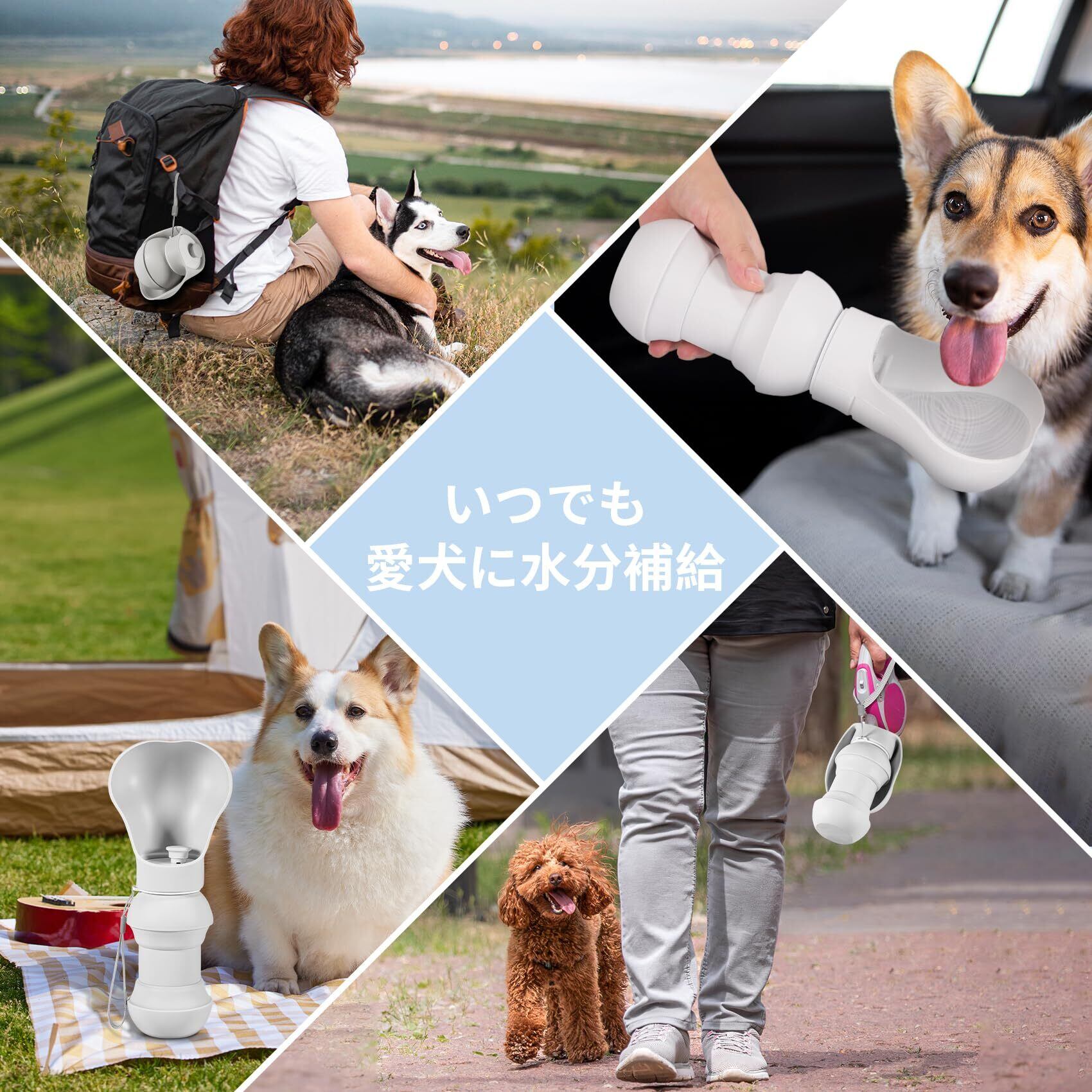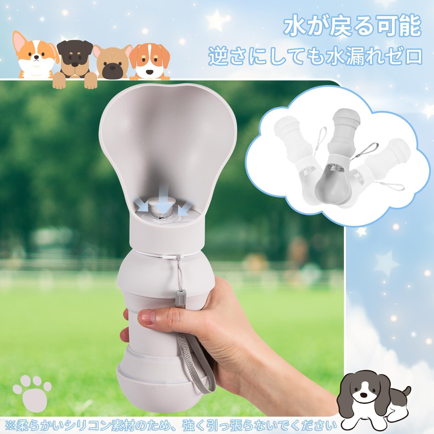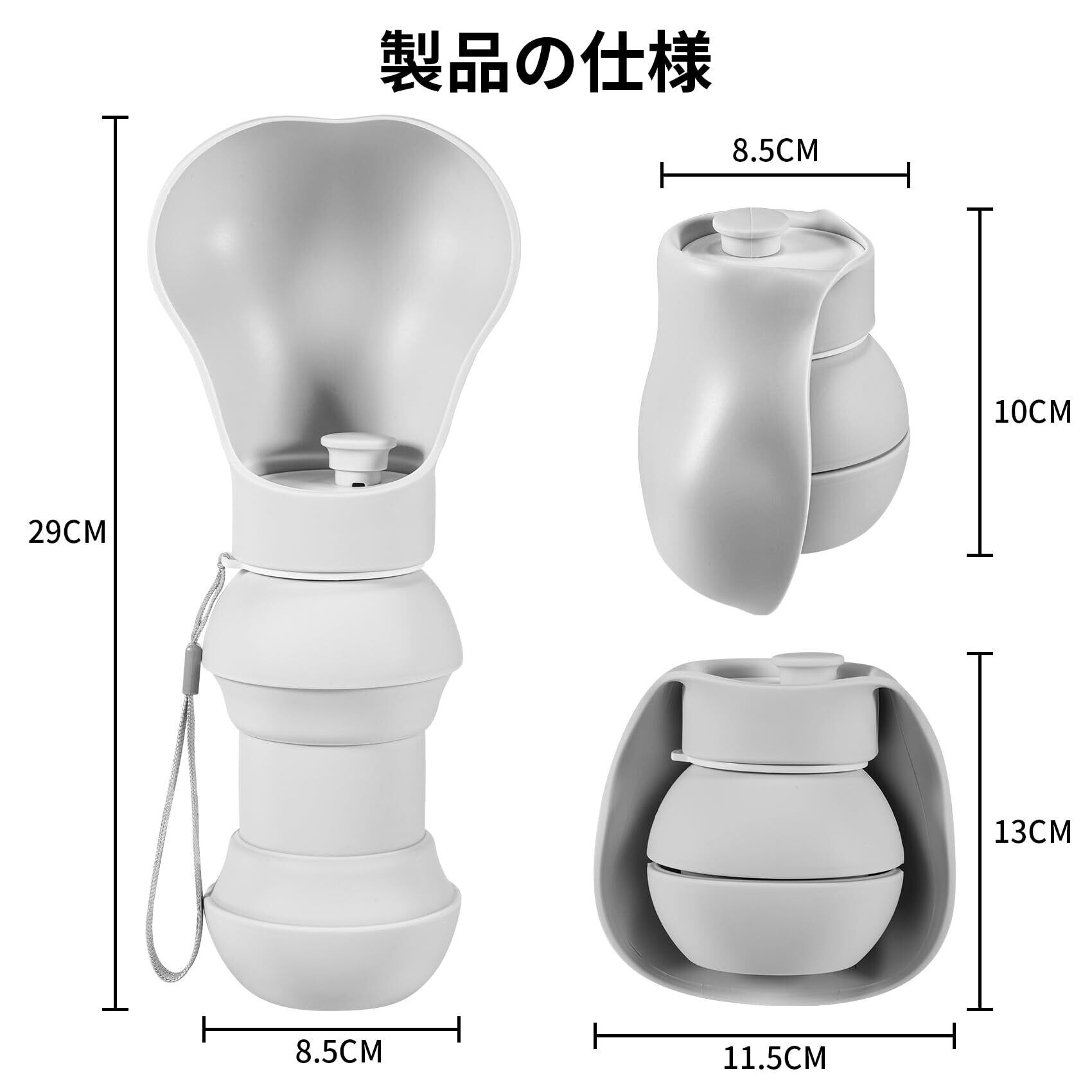 ペットウォーターボトル 折りたたみ 550ml シリコン製 ペット給水ボトル 水槽付き ストラップ付き 水漏れ防止 水分補給 コンパクト 携帯用 散歩 アウトドア 犬 猫 グレー