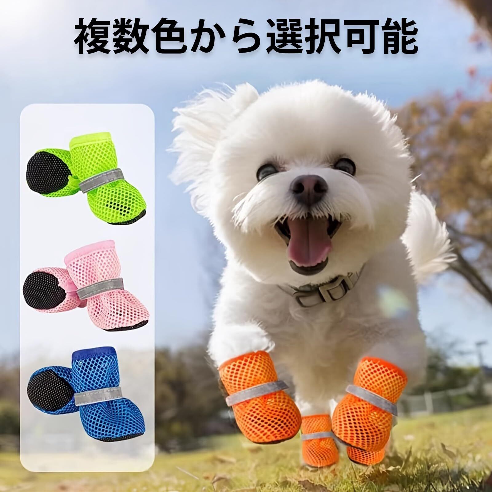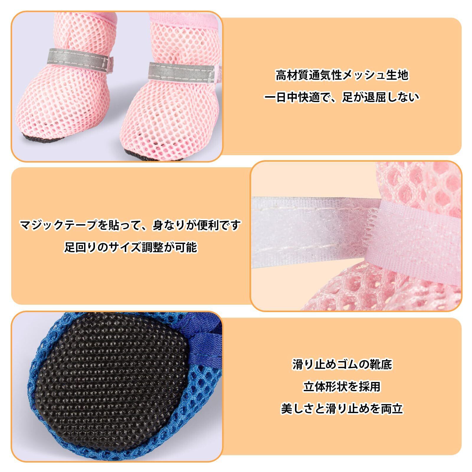 犬 靴 メッシュ 夏 犬 足カバー 通気性 滑り止め 脱げない 小型犬 中型犬 肉球保護 犬のくつ 散歩 犬 猫 夜間反射テープ付き 犬用シューズ 汚れ防止 アウトド アペット用 (ピンク, M)