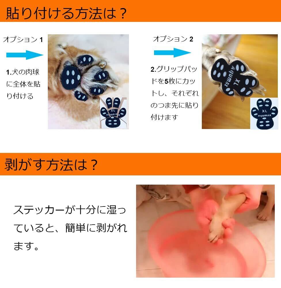 【暖かいヒント】 1)オイルも水も、製品をくっつかないようにする最も重要な要素です。だから、あなたの犬の足はちょうどエモリエントオイルでコーティングされている場合は、肉球を貼り付けたときに固執しません。 2)愛犬の足のサイズが2つのサイズの間にある場合、大きいサイズを購入してください。それから犬のフィートの牽引のパッドを付ける 2 つの方法があります。
