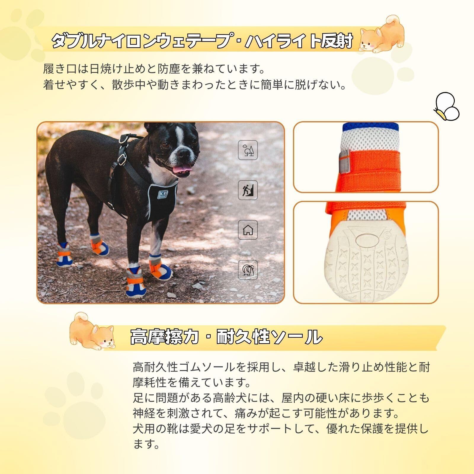 LIKOKLIN 犬靴 メッシュ穴 犬用メッシュシューズ ドッグブーツ ドッグくつ 小型犬 反射テープ付き 滑り止め 長靴 肉球保護 脱げにくい レザー ゴムアウトソールソフトメッシュ 3層構造 柔らかく軽量 散歩 4個入り/2個入り (オレンジ, 3#(4個入り))