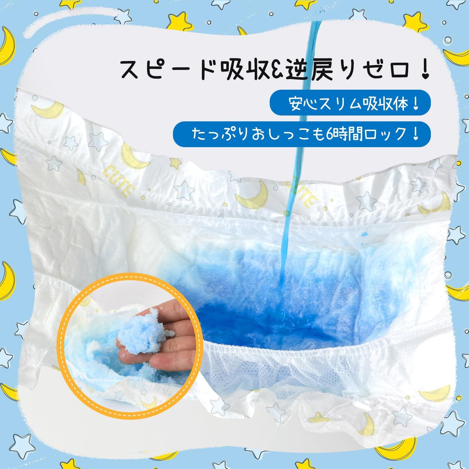 ・吸収サイン付き:濡れると黄色ラインが青に変わり、交換タイミングがひと目でわかります