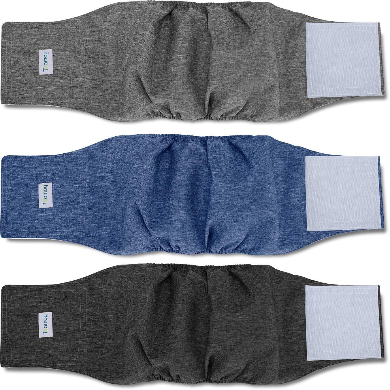 Teamoy マナーベルト 犬用 3点セット メッシュ裏地 防水加工生地 ウェストサイズ調整可能 マーキング防止 介護用 お漏らし対策 オス 男の子(L1,ブラック+グレー+ブルー)