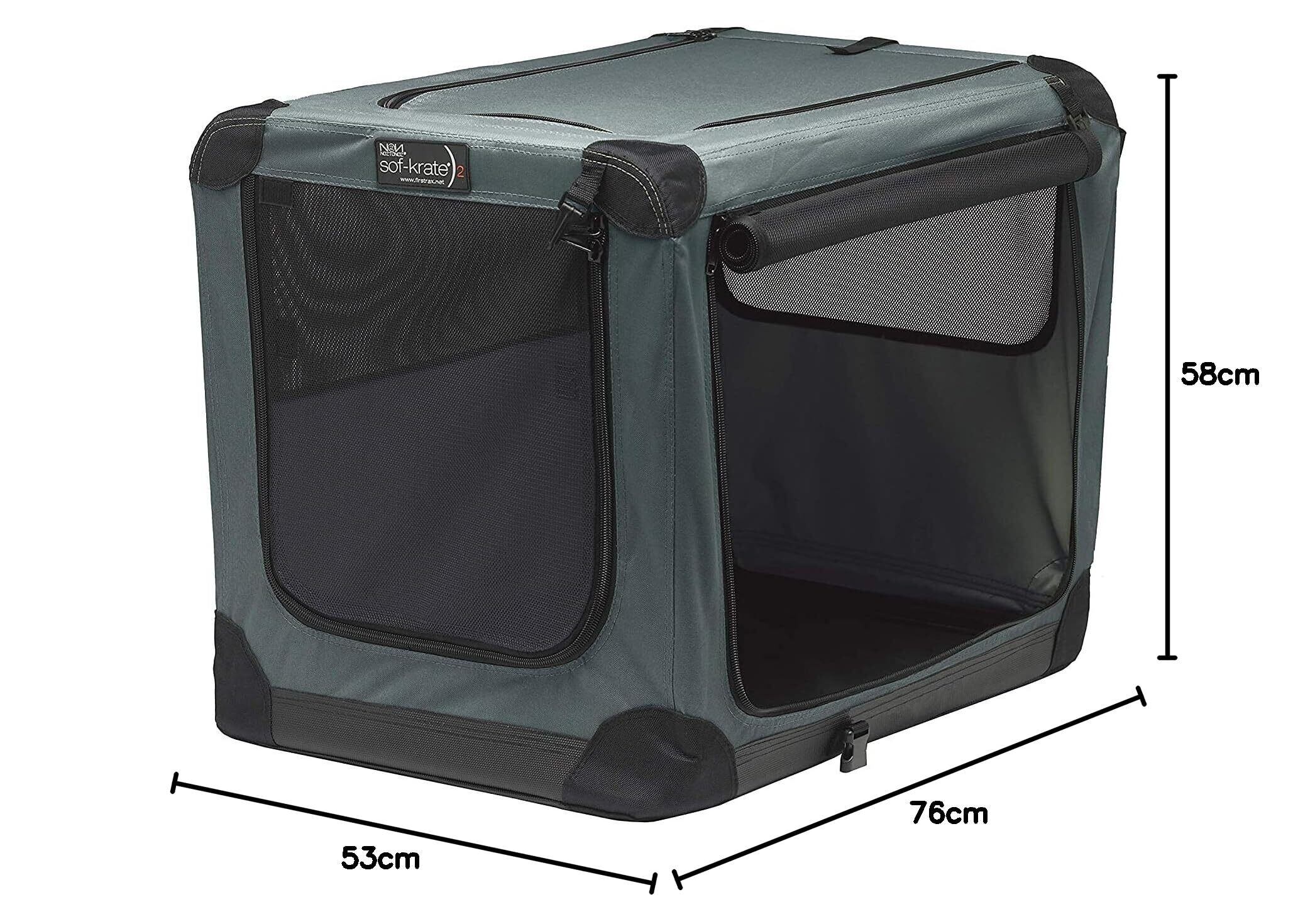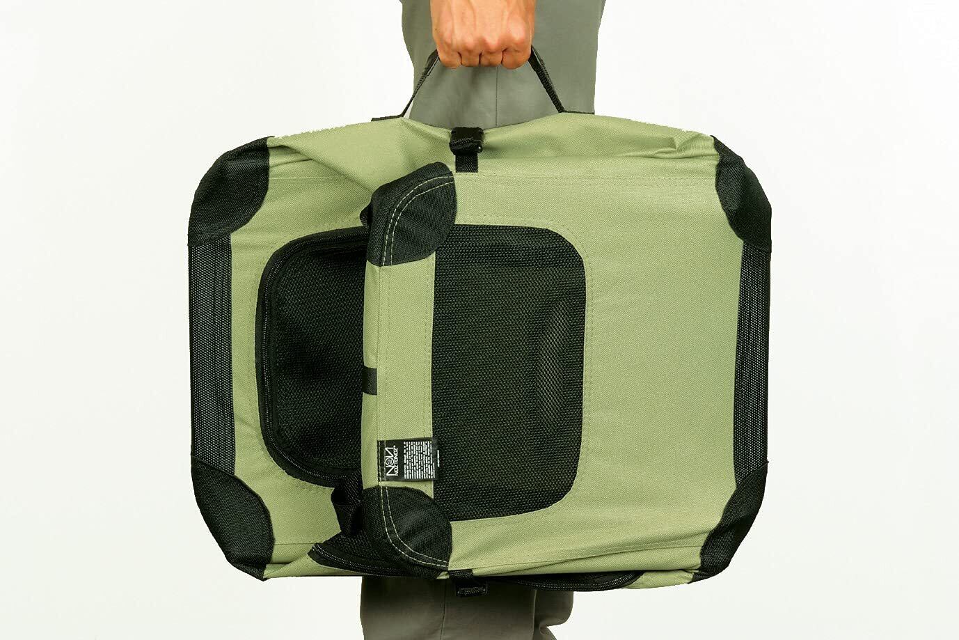 折りたたんで持ち運び可能な布製ペットケージ。