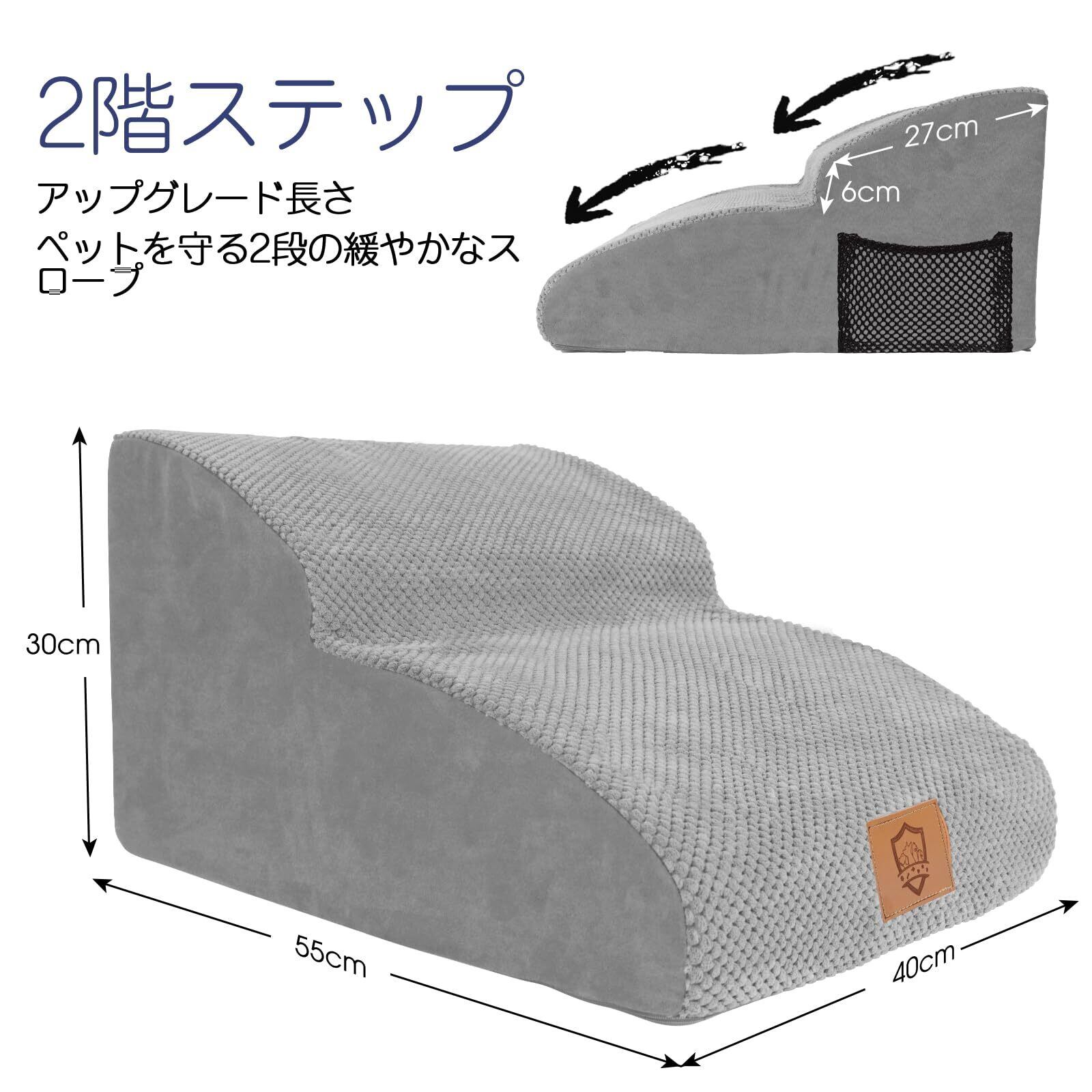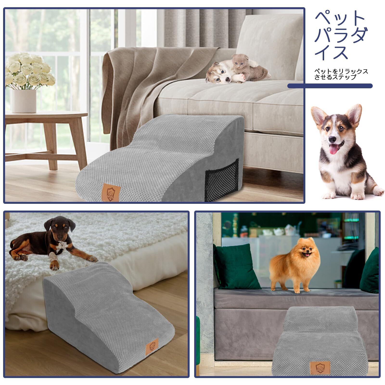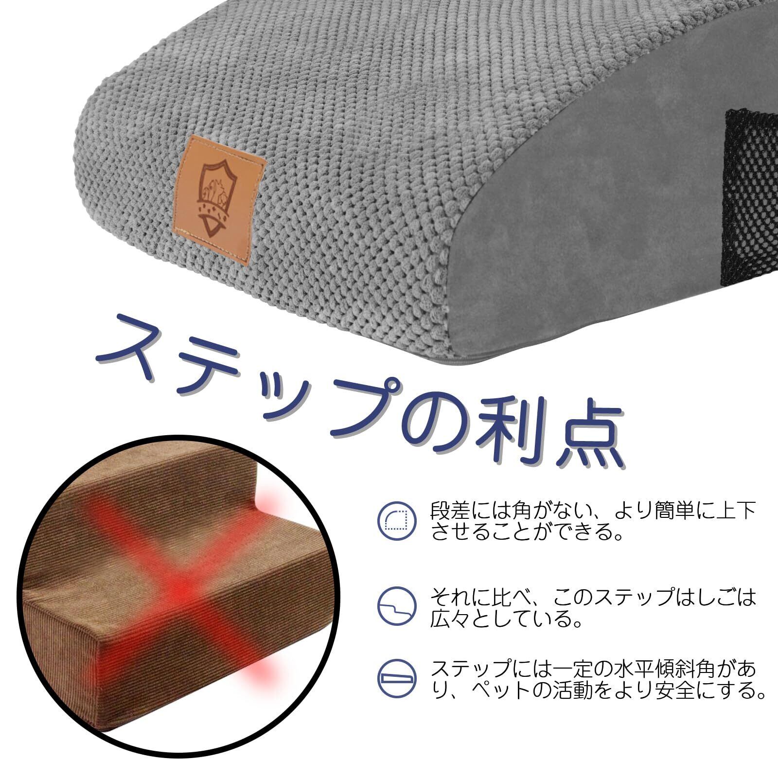 安定性が優れる:ステップの底に滑り止めが付いていて、ステップが飛び乗ってもずれないので安全です。カバーはコーデュロイの材質で、柔らかくて滑りにくい、爪も引っ掛かないので、ペットがステップで滑ったり転んだりはしません。より安心に使えます。カバー取り外し可能で、洗濯機で洗えるのでとても便利です。