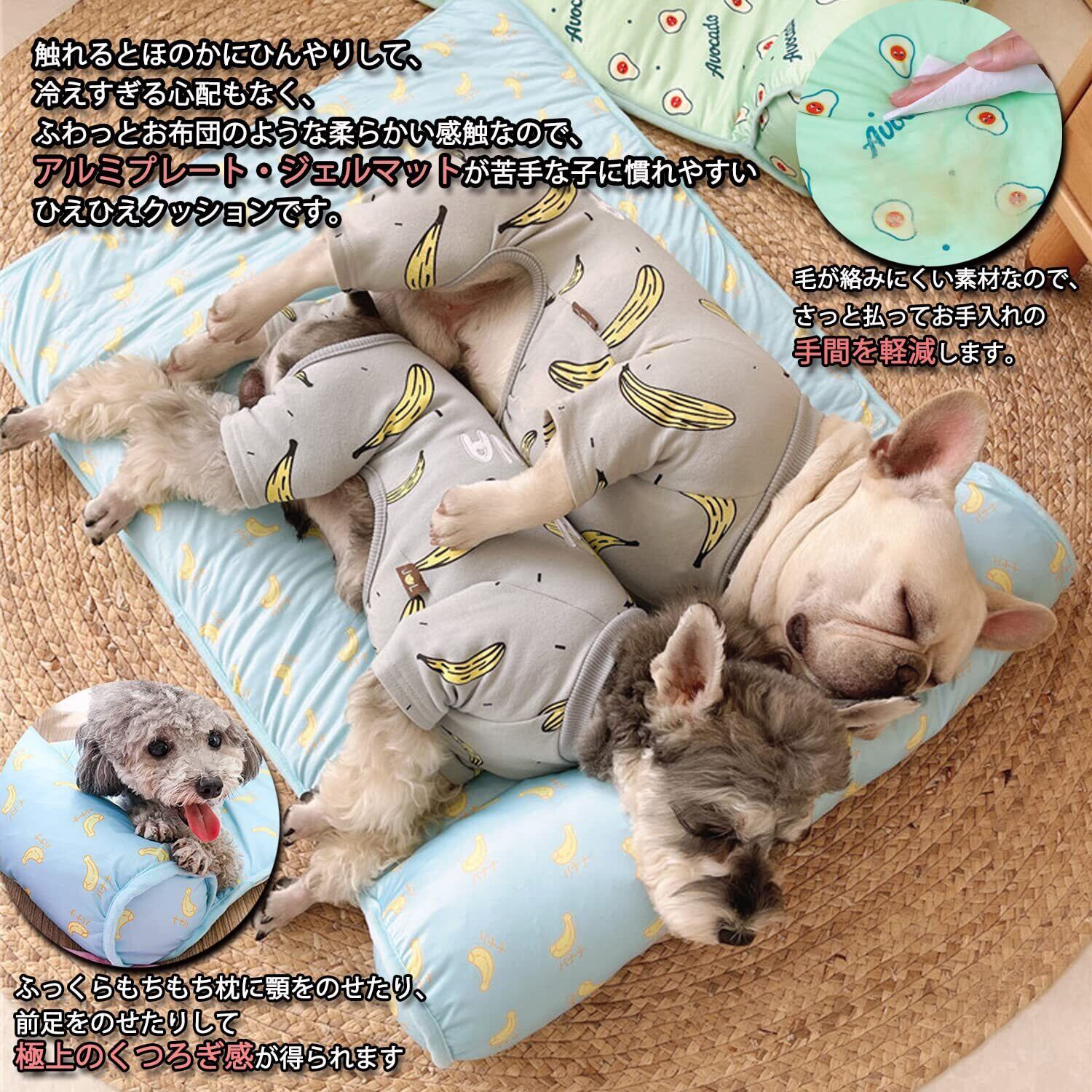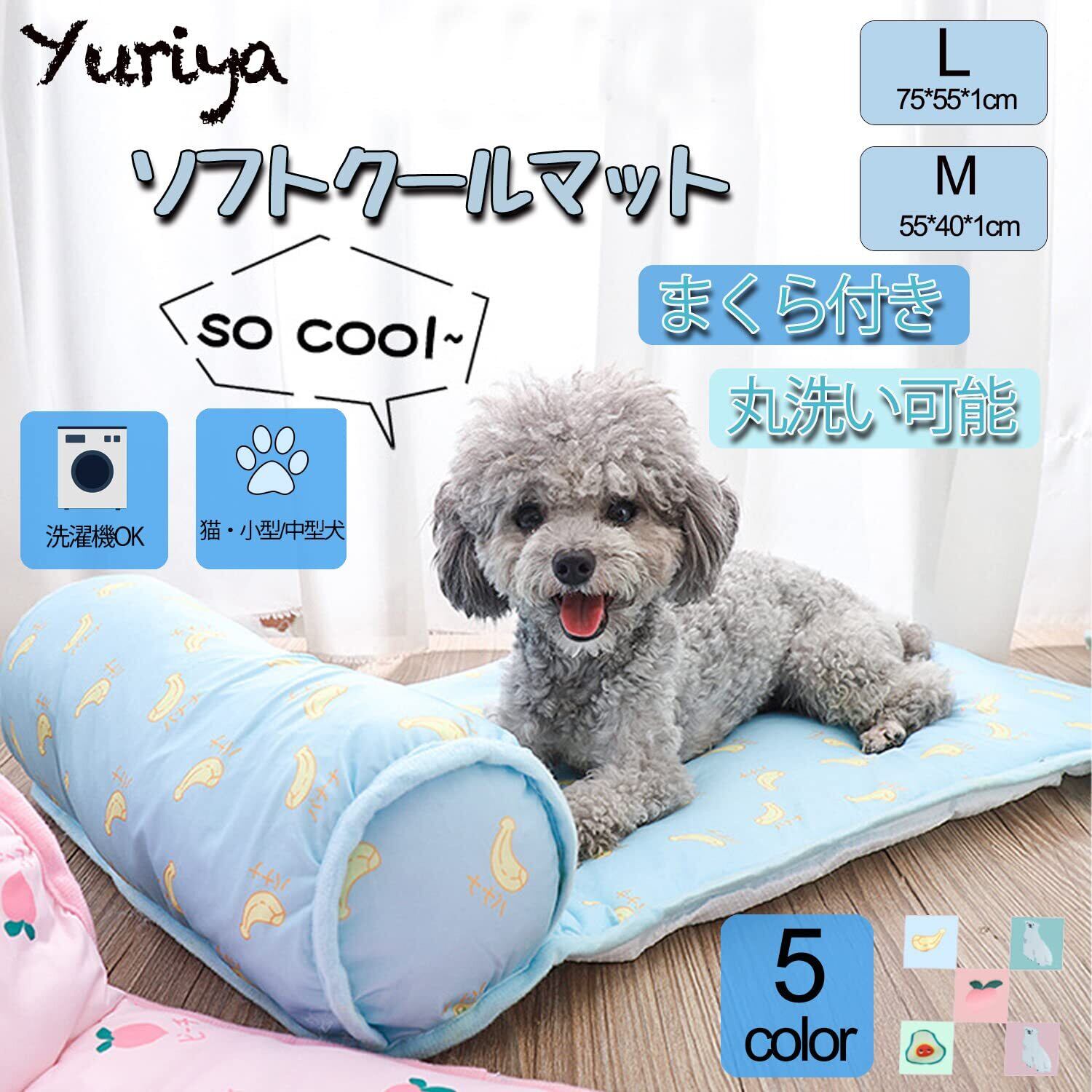Yuriya ソフト クールマット ひんやり ペットベッド 犬 柔らかい 枕付き 涼感 軽量 滑り止め 丸洗い 小型犬 中型犬 猫 暑さ対策 顎のせ ひえひえ クッション 冷却マット 夏用 バナナ