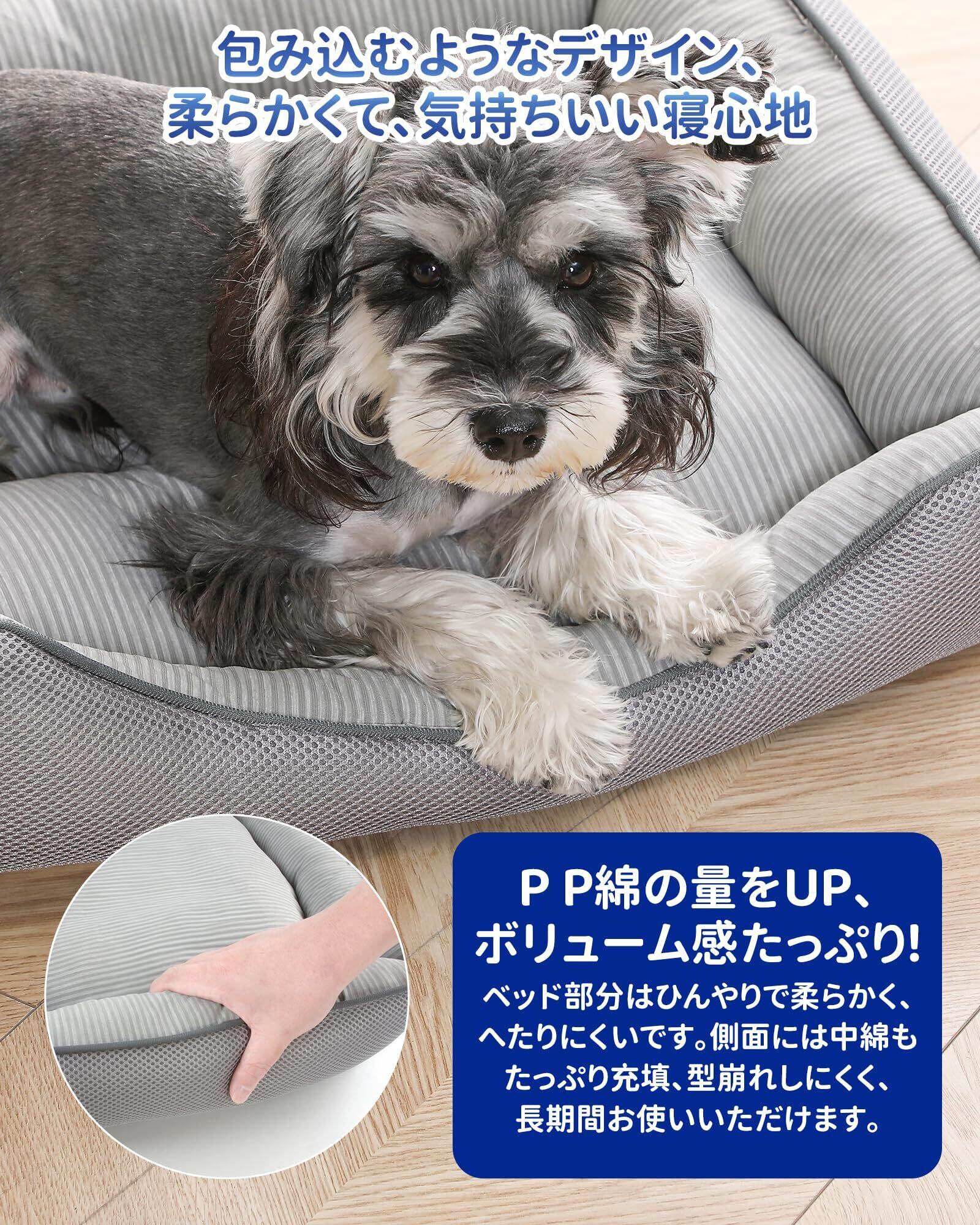 JEMAジェマ 犬 猫 ベッド 夏 ひんやり 冷感 洗える 犬 夏用ベッド ペットベッド 夏用 ペットソファー ペットクッション 犬用ベッド 猫用ベッド 極冷感ベッド 二層複合生地 3Dメッシュ 通気性アップ ふわふわ 暑さ対策 滑り止め付き 45x35x13cm グレー
