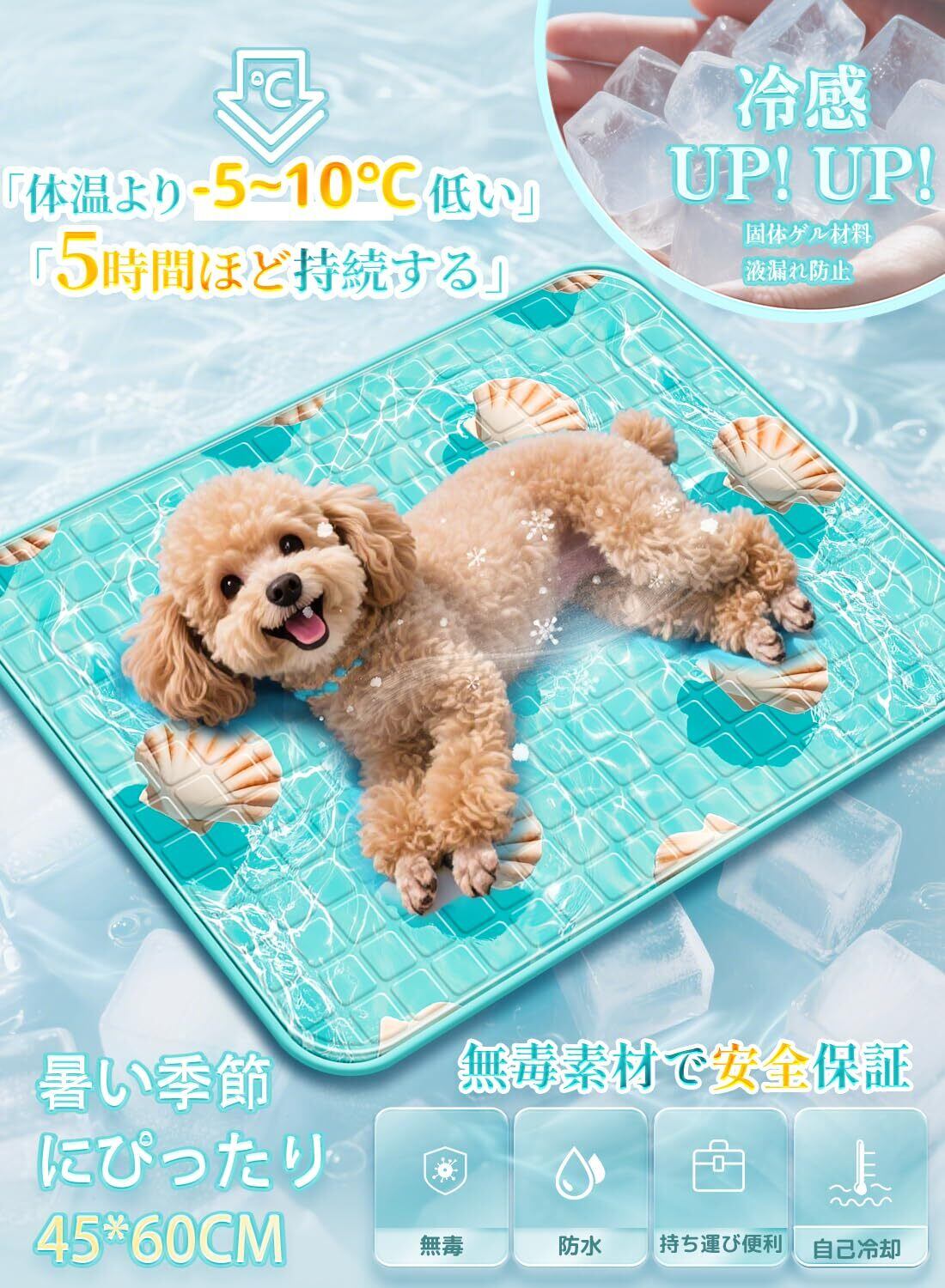 特徴 ひんやり, 抗菌, 折りたたみ可能, 滑り止めの底, 耐噛み