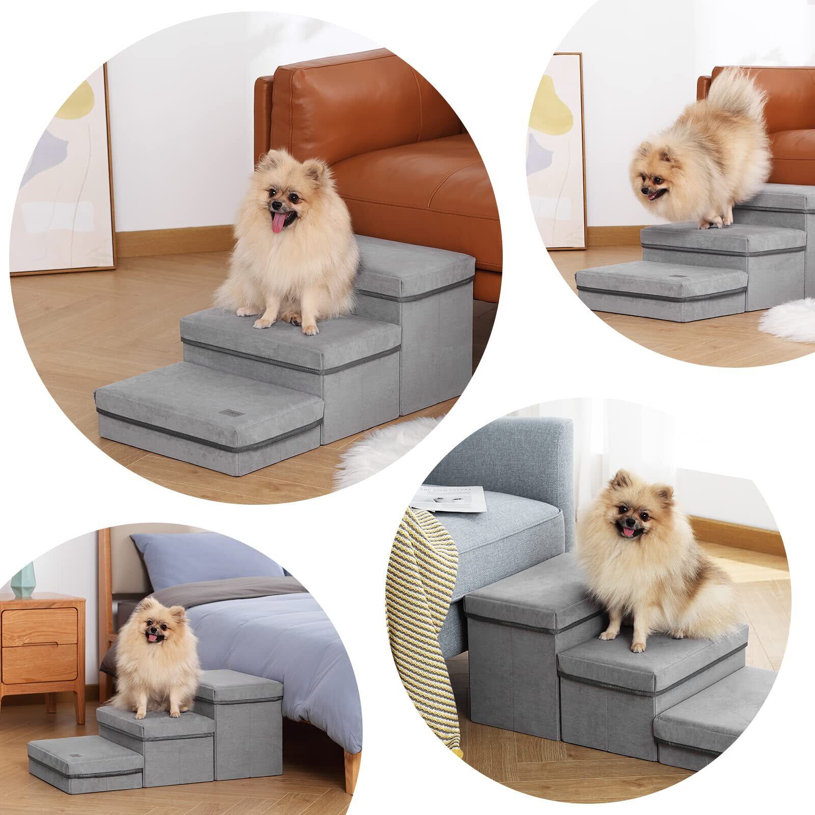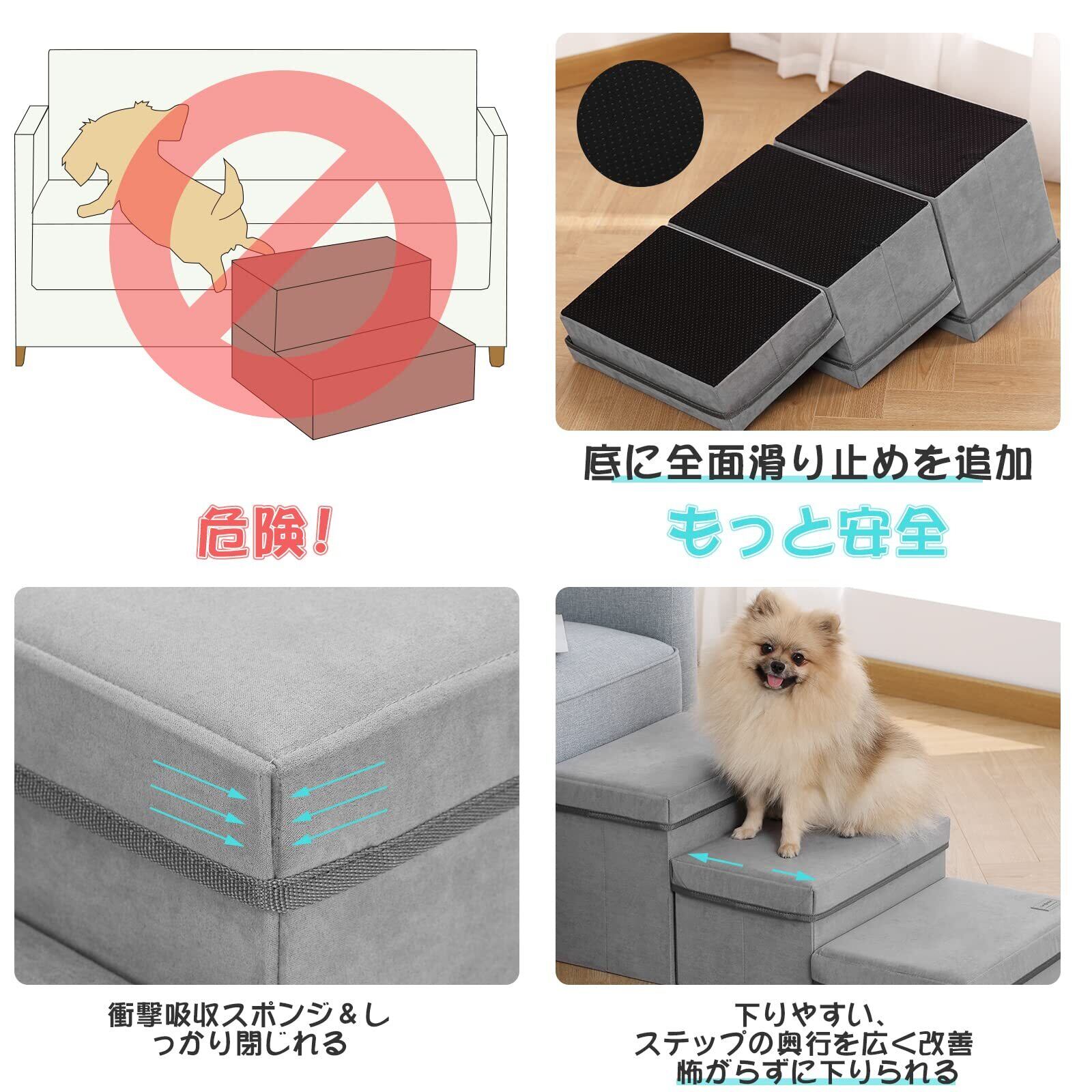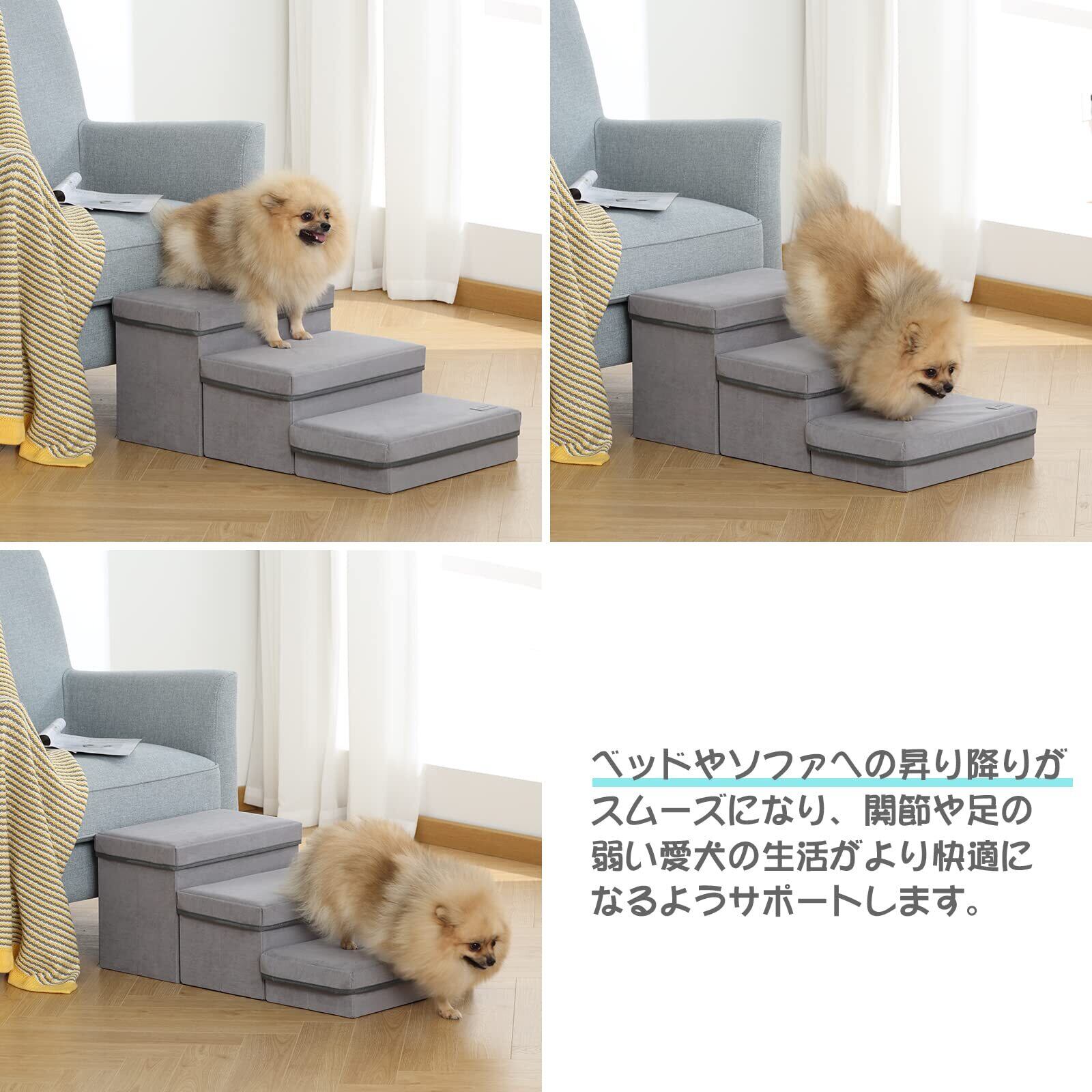 ドッグステップ 3段 犬 ペット用階段 踏み台 収納型ペットステップ 耐荷重20KG 足腰への負担を軽減 怪我防止 安全 小型犬 ヘルニア 高齢犬 シニア犬 収納ボックス 組立ペットステップ 介護用品