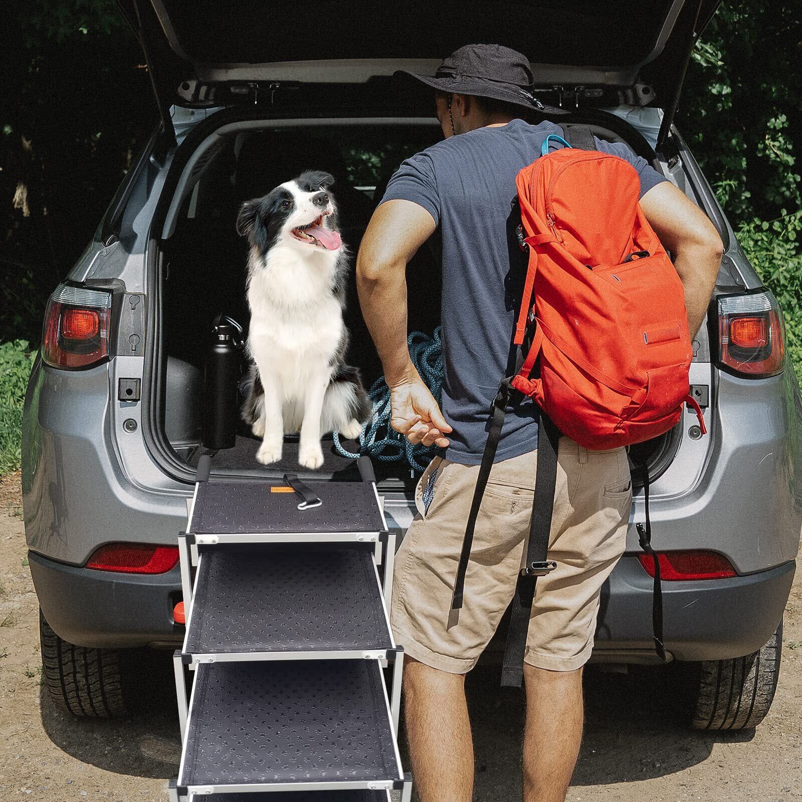 「ペットの守護者」ペット用階段は犬が車にスムーズに入るのを助けます。犬の関節と膝を保護し、関節炎や膝の病気を患っている犬に適しています。大型犬や老犬の足腰への負担を減らしてくれます。ペットを持ち上げなくてよいので、飼い主の負担を軽くできます。
