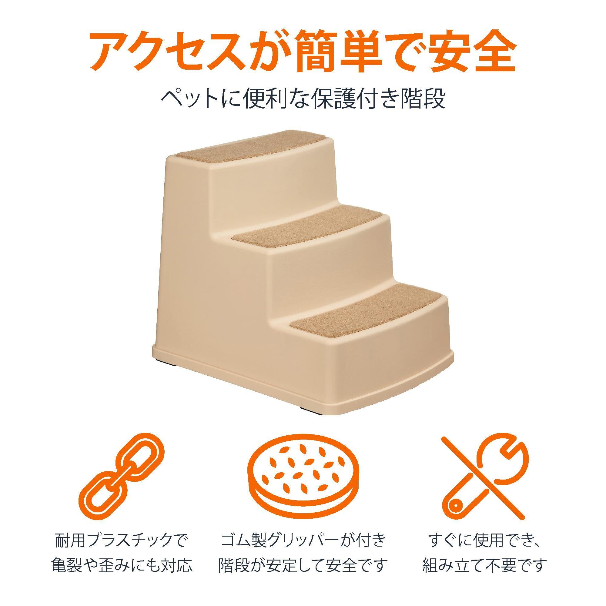 ベーシック ペット階段 滑り止め付 犬猫用 3ステップ 47.2×38×39cm タン