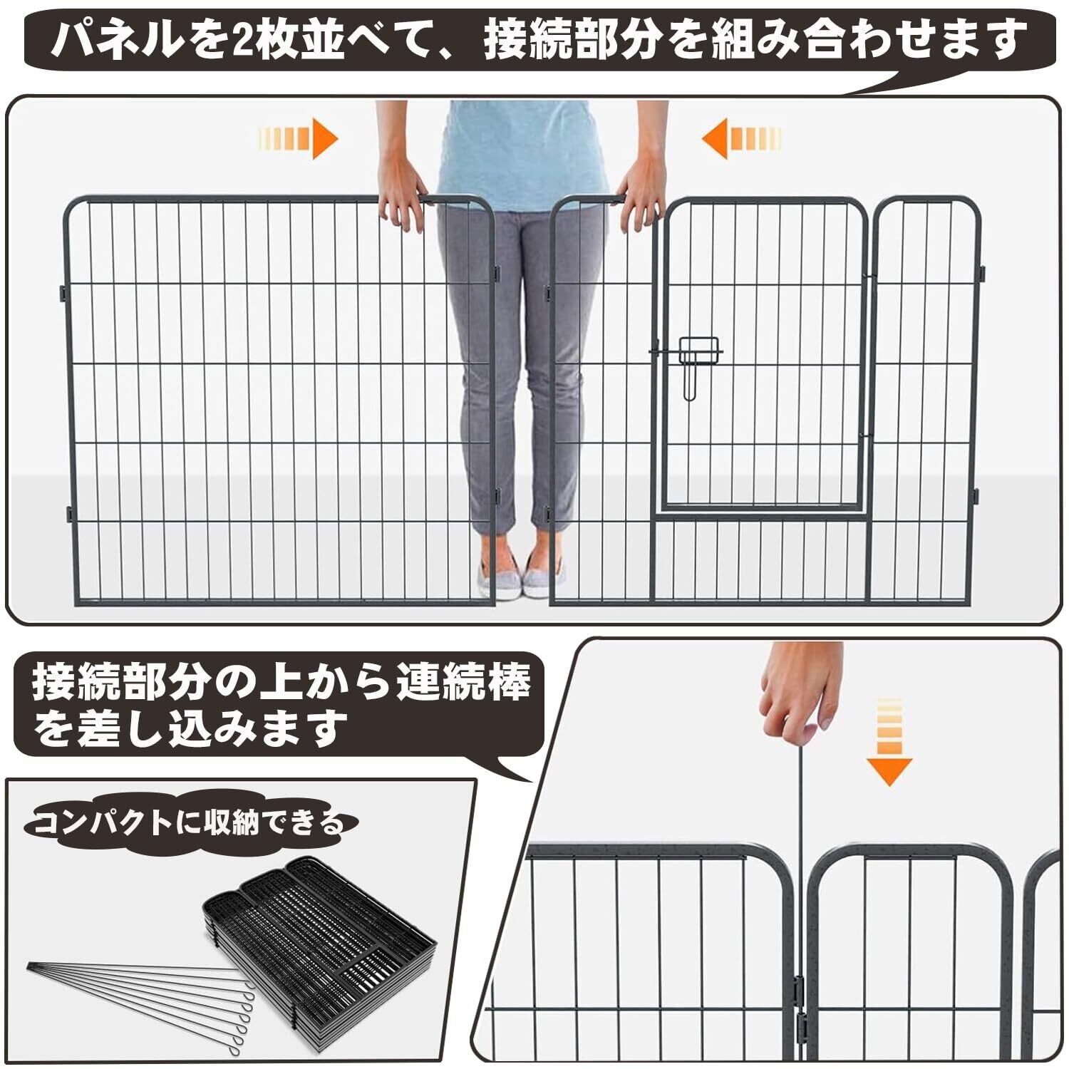 【迅速組立て・便利収納:いつでも出かけられる】 連結棒を使用すれば、フェンスのパネルは瞬く間に組立・分解可能で、操作が非常に簡単です。不使用時には折りたたんでコンパクトに収納できるためスペースを節約でき、旅行時の持ち運びにも最適です。柔らかい地面で使用する場合は、連結棒をさらに地面に固定することで、犬用フェンスの安定性を追加で高めることができます。今すぐ注文して、愛犬のための幸せな楽園を作りましょう!