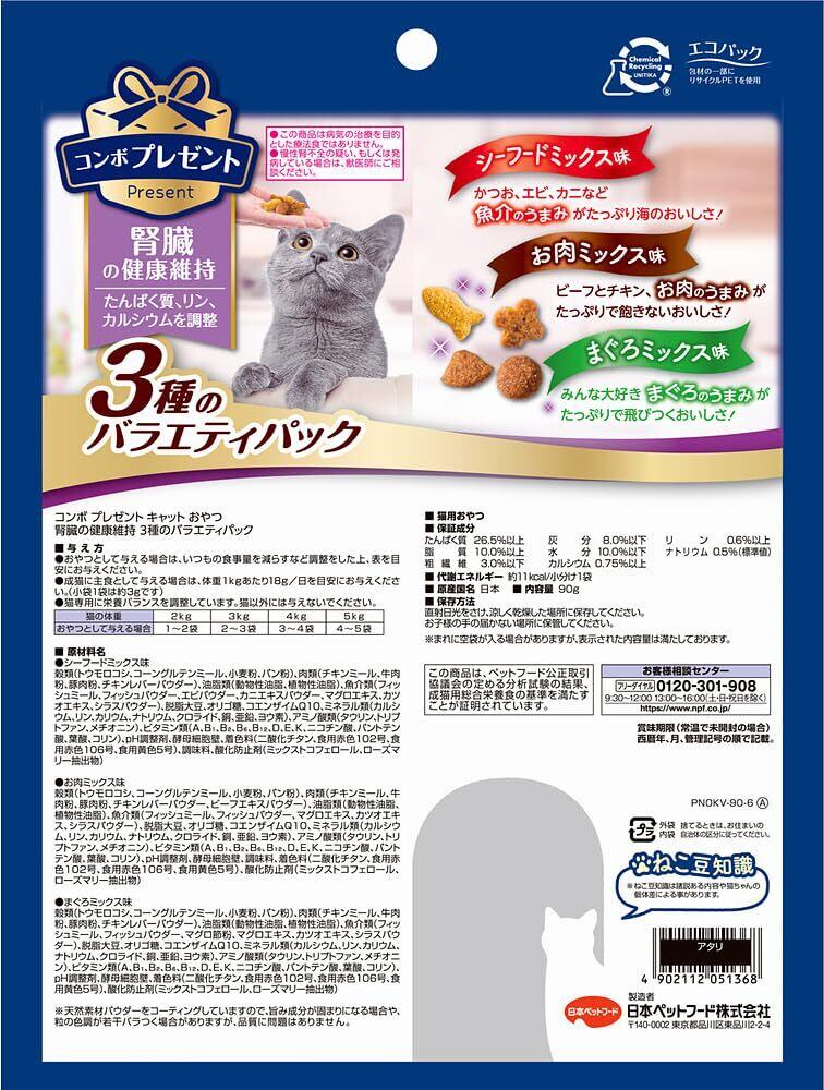コンボ プレゼント キャット おやつ 3種のバラエティパック 腎臓の健康維持 90g 【かりかりドライ】 【国産】 【小分包装】