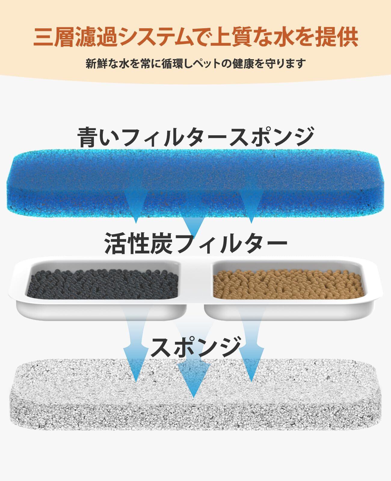 三重ろ過システム:活性炭フィルターは異臭を除去し、水の質を改善する。純粋樹脂は重金属イオンを除去する。高密度スポンジは汚れや不純物を除去する