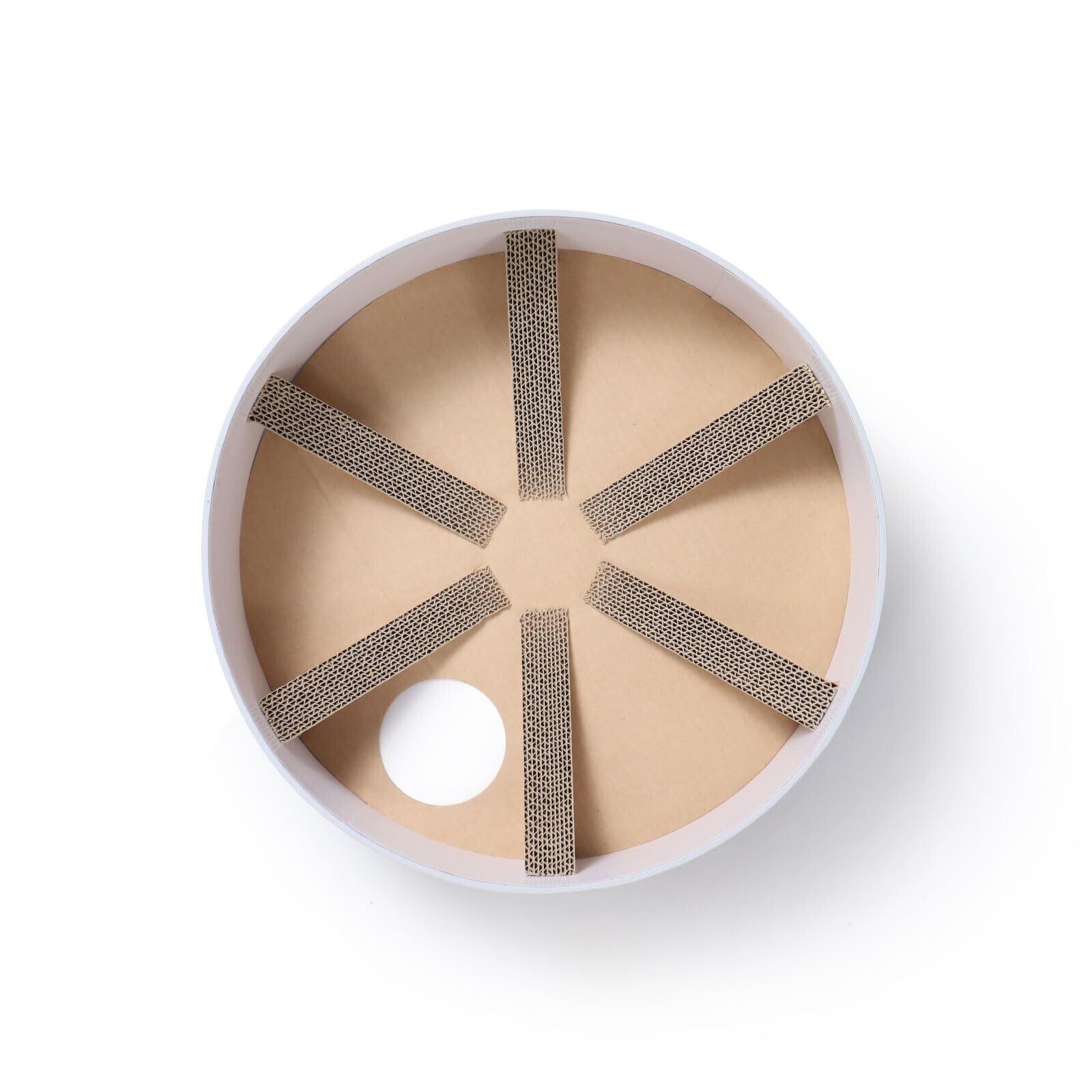 猫壱のバリバリボウルは猫のからだにフィットする丸型&すり鉢構造なので、ベッドとしてくつろいだり、爪とぎするのにピッタリ!