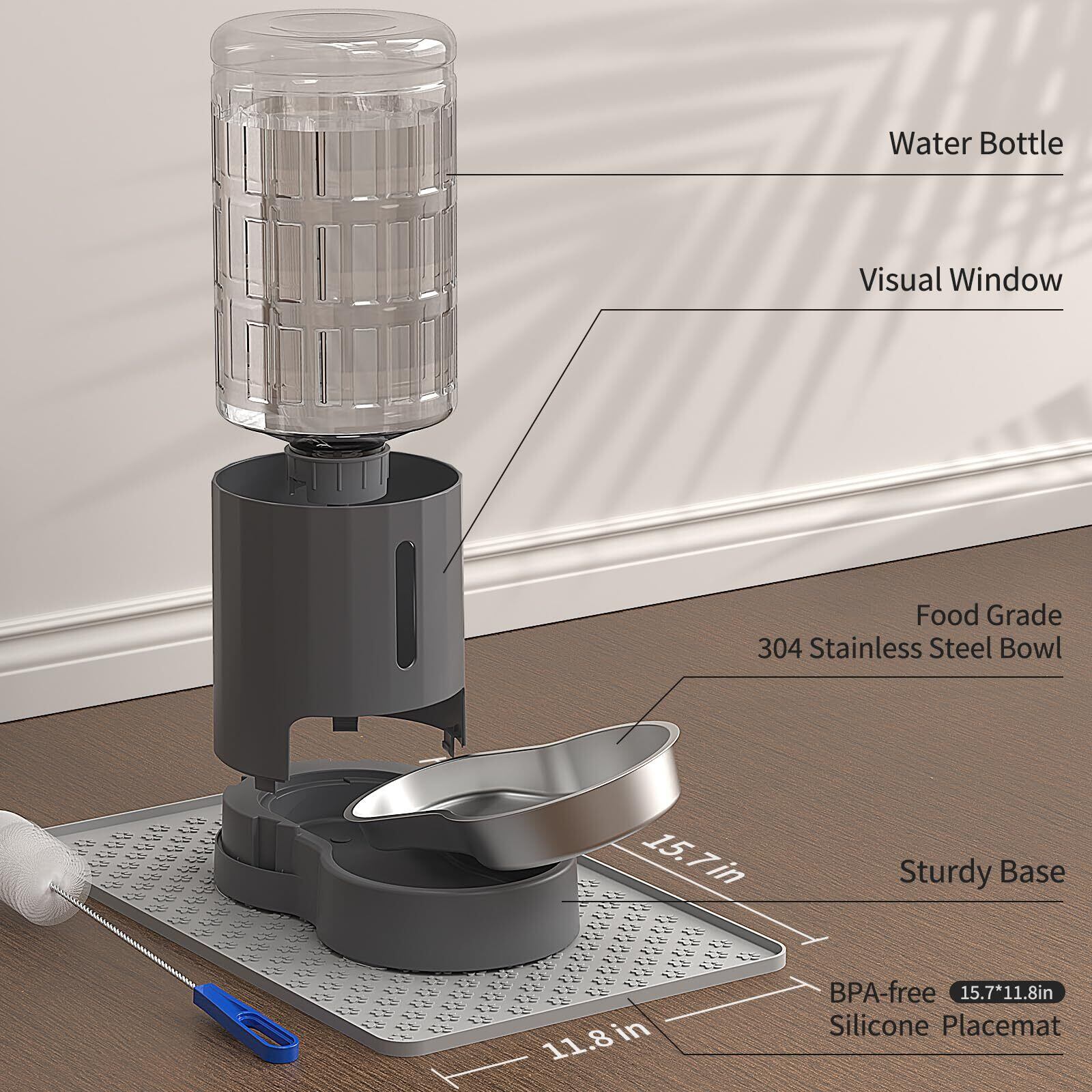 UNSPOW 4L 猫水飲み器 プレースマット&ステンレス製ボウル付き 自動重力式ペット給水器 大容量自動給水器 多頭飼い 留守対応 大きいサイズ 中型小型犬用