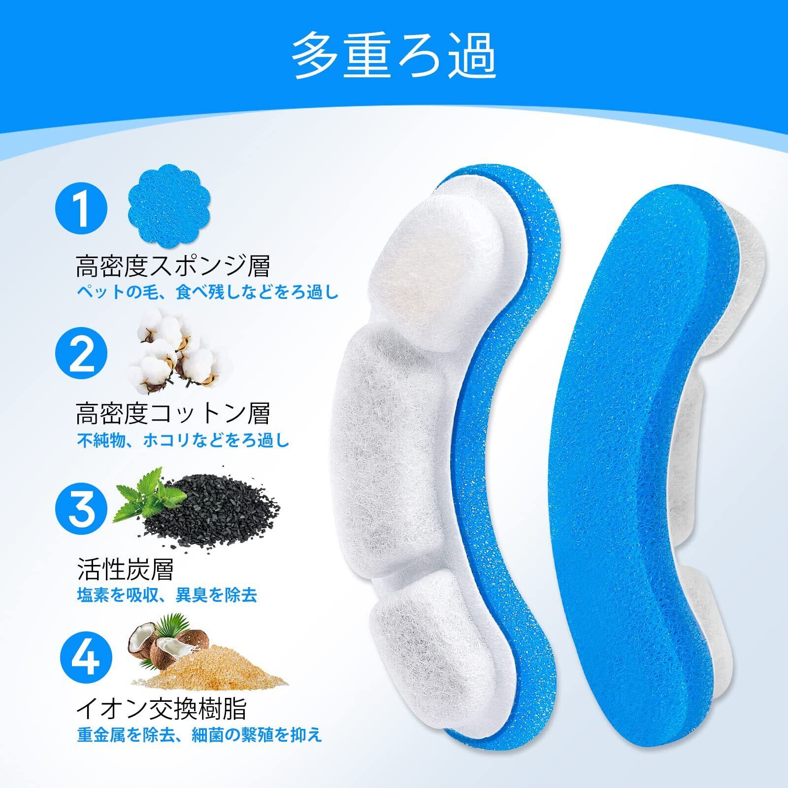 MyfatBOSS 8枚入 猫 給水器 フィルター 水 給水機 軟水化フィルター ペット給水器 循環式の透明な猫の飲用噴水 1.8L大容量自動給水器に適用 活性炭 イオン交換樹脂 青い