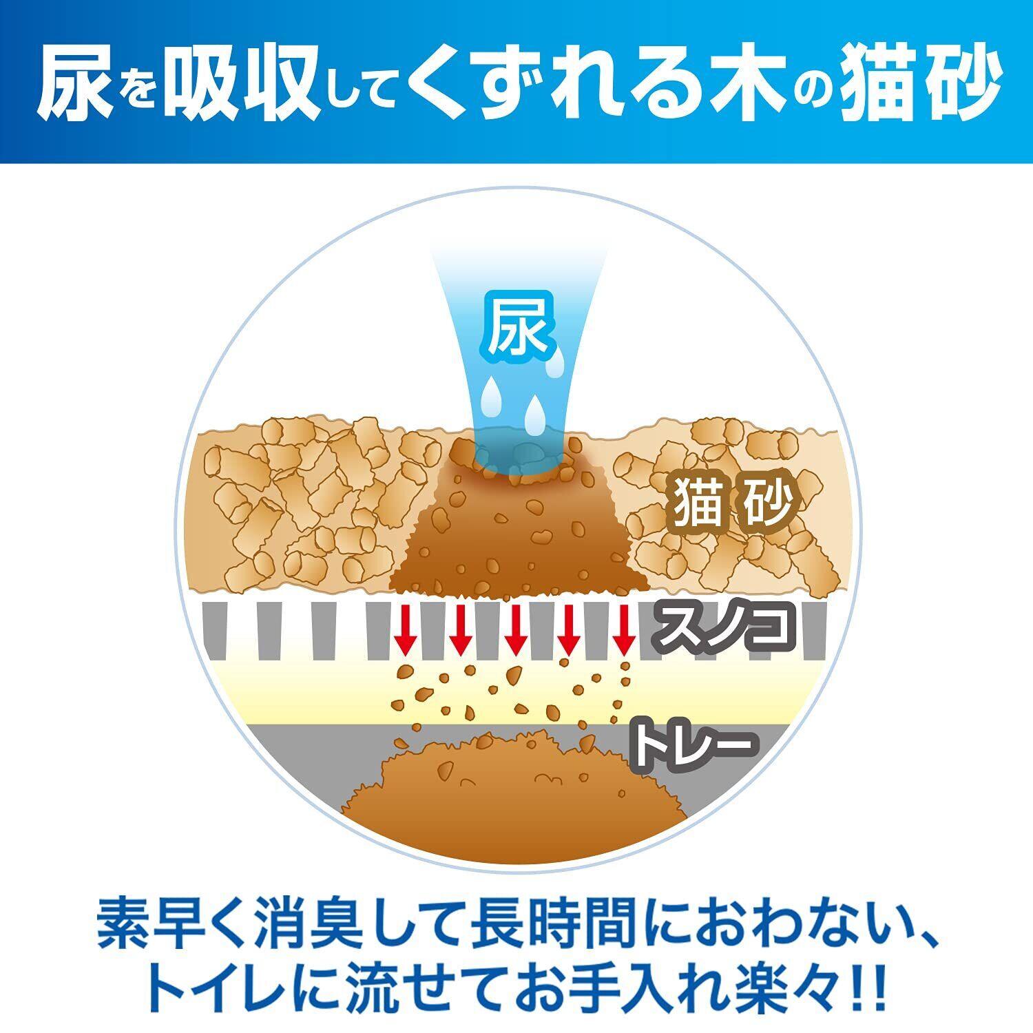 猫砂は天然素材を使用しているため、色に多少のバラツキがあります。 猫砂の製造工程上、形状・サイズ等に多少のバラツキがあります。 猫砂開封後は封をして直射日光・高温多湿の場所をさけて保管してください。 愛猫の性格・性質等をご理解のうえ、お選びください。 商品の仕様は予告なく変更する場合があります。 廃棄する場合は、各自治体の指示に従ってください。 品質管理には万全を期しおりますが、お気づきの点がありましたら お客様相談室までお問合せください。