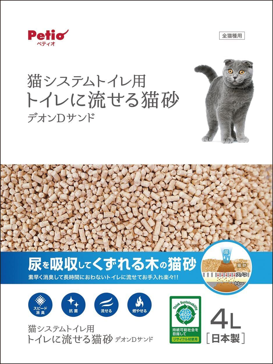ペティオ (Petio) システムトイレ用 トイレに流せる猫砂デオンDサンド 4L