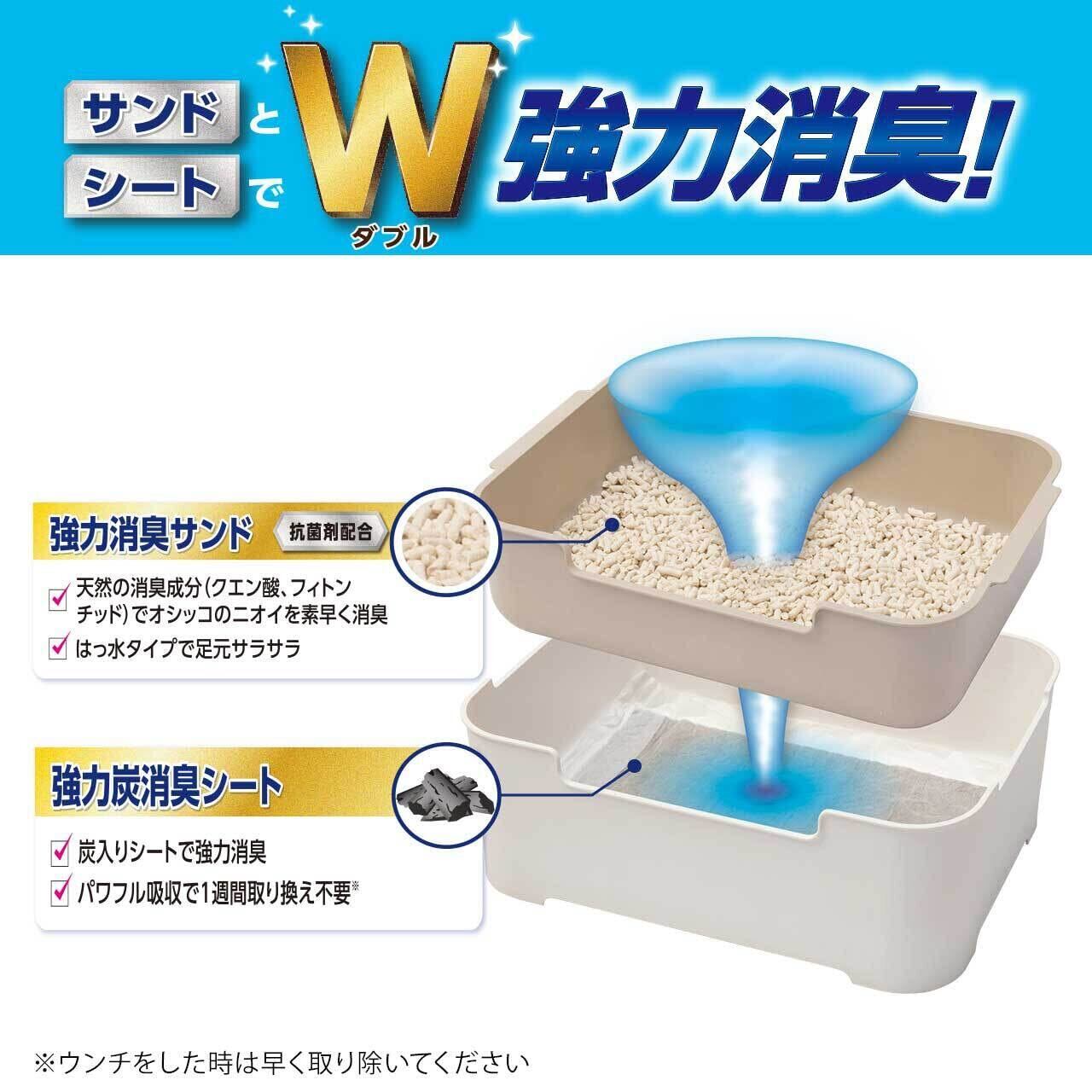 ・炭入りシートがニオイ成分を吸着し、強力に消臭するシステムトイレ用シートです。 ・1枚で愛猫1頭のオシッコ約1週間をしっかり吸収*。1週間に1回の取り替えでお手入れ簡単です。 *愛猫1頭(体重8kgまで)の使用時。ウンチをした場合は早く取り除いてください。
